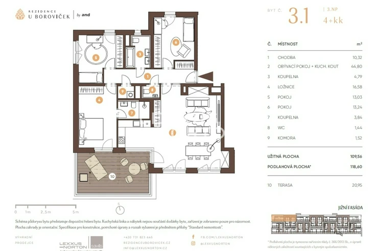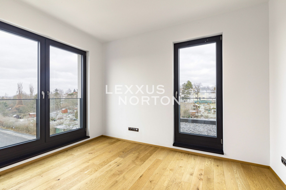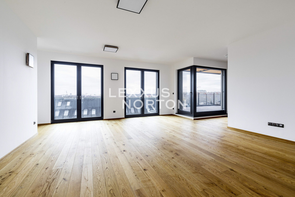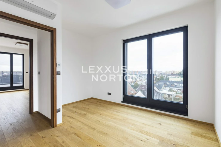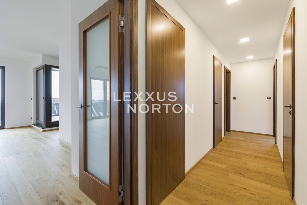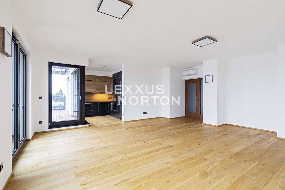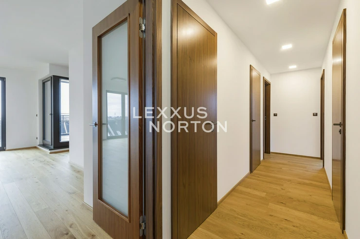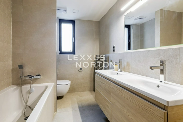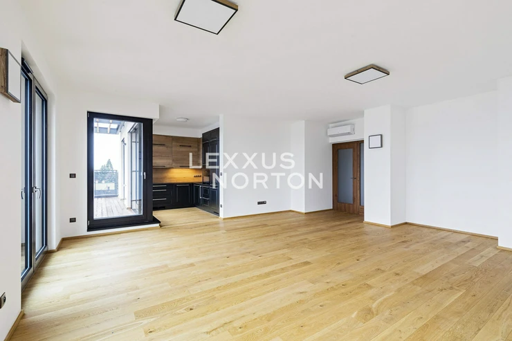 We are offering for rent a luxurious, unfurnished 3-bedroom apartment measuring 110 sqm with a terrace (21 sqm), located on the 3rd floor of the U Borovicek residential complex in a quiet neighborhood of Prague 6 – ŘepyThe layout consists of an entry hall, a spacious living room with a kitchenette and access to the terrace, three bedrooms, two bathrooms, and a separate toilet. A major advantage of the apartment is its sunny southwest orientation, including the terrace. The apartment comes with two parking spaces in the building’s garage and a spacious storage unit.The kitchenette is equipped with an induction cooktop, oven, dishwasher, refrigerator with freezer, and microwave. The bathrooms feature a bathtub and a shower stall. The units are equipped with high-quality technical and sanitary fixtures (kitchen, plumbing, internet, air conditioning, blinds...) and other luxury materials (Lignis steel entry doors, hardwood floors, light switches, interior doors). Additionally, there are modern lighting fixtures in all rooms, luxury mirrors from Amirro s.r.o., an LG washer-dryer, and a Leifheit cleaning set. The apartment is located in a quiet location with excellent access to the center of Prague (20 minutes by tram), Vaclav Havel Airport (10 minutes by car) and public transport (tram stop 8 minutes walk, bus 50 m from the house). There is a wide range of civic amenities nearby - Lidl (5 minutes walk), Albert, Billa, OC Zlicin, IKEA, Globus. For leisure activities are nearby Ladronka park, Hvezda game reserve and cycle paths.