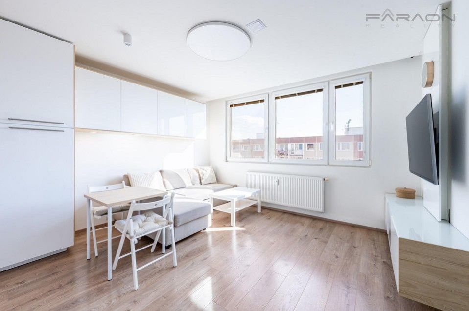Rent of a sunny, completely renovated 2-bedroom apartment of 32 m, located on the 8th floor of a well-maintained panel house with an elevator in a quiet residential area of Barrandov, right next to Prokopské údolí.