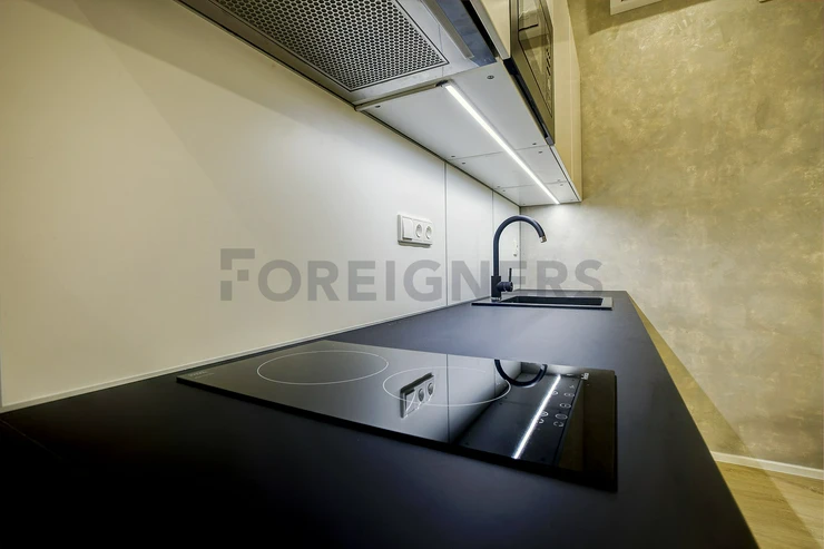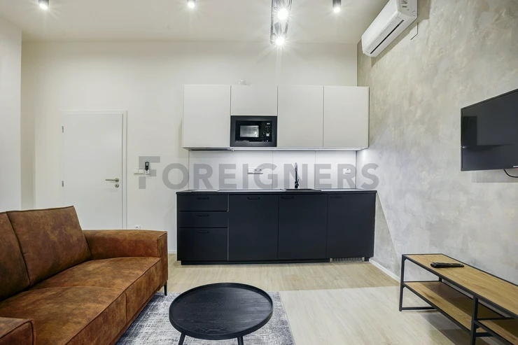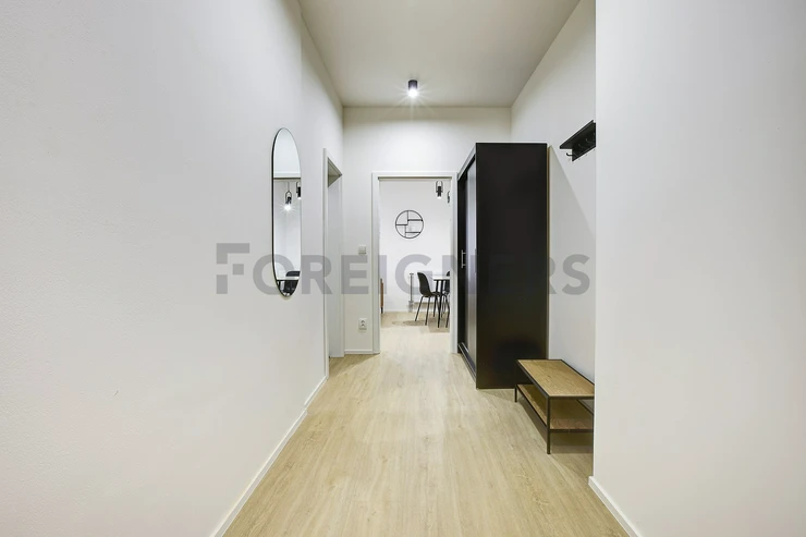 This modern and comfortable apartment, built with attention to detail, is located right in the city center. The 1-bedroom apartment (2+kk) has a total area of 40 m². The windows face the street.
