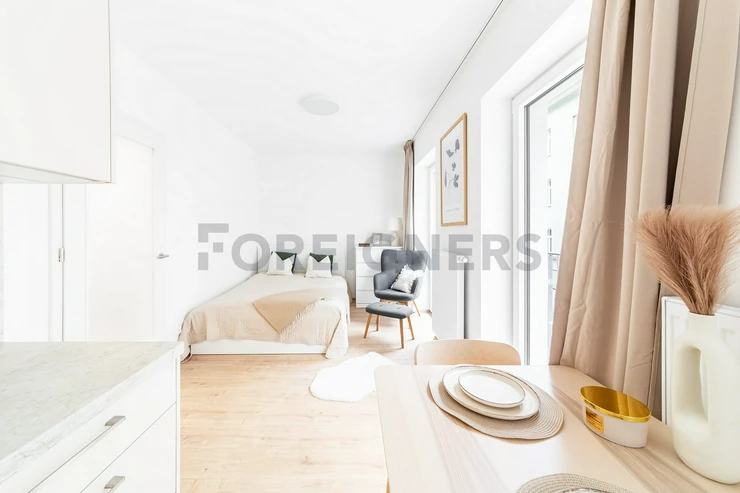 We exclusively offer for rent a beautiful, fully furnished apartment 1+kk, 28 m², located in a newly built development project close to the city center. The apartment is designed to make the most of every centimeter of space while providing comfortable and modern living.