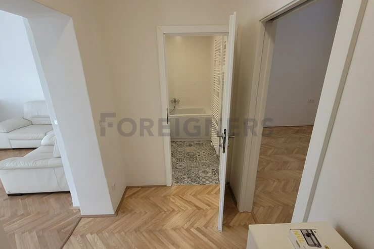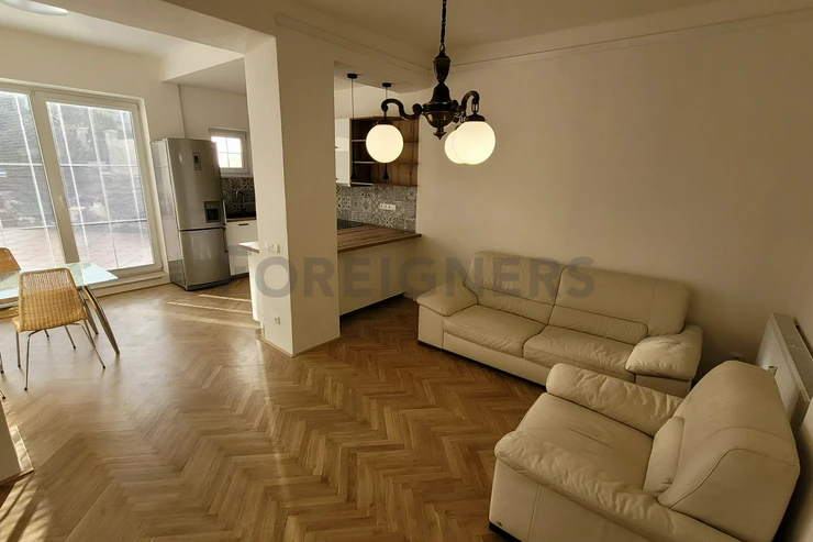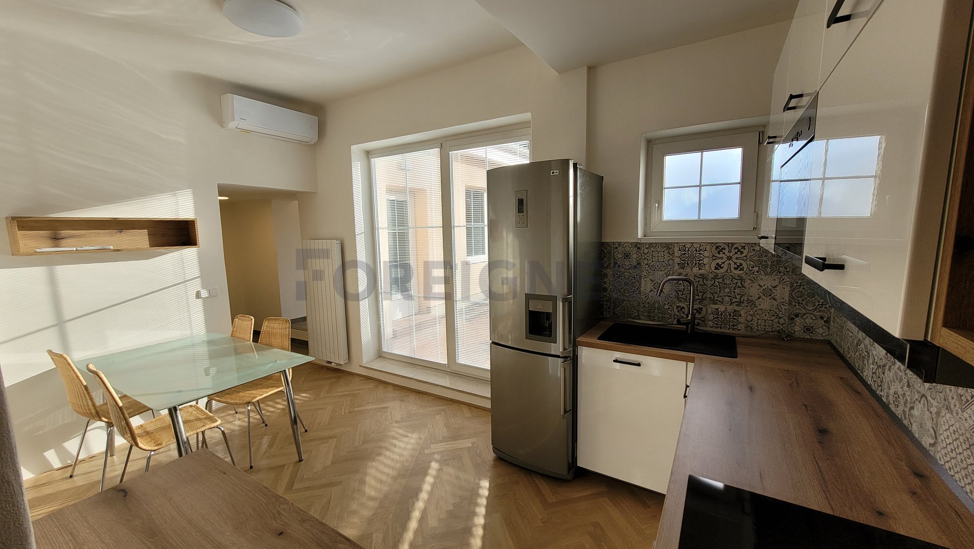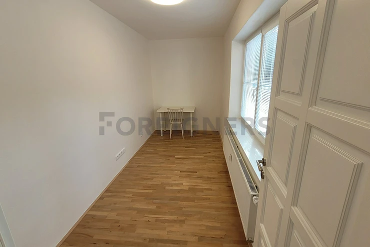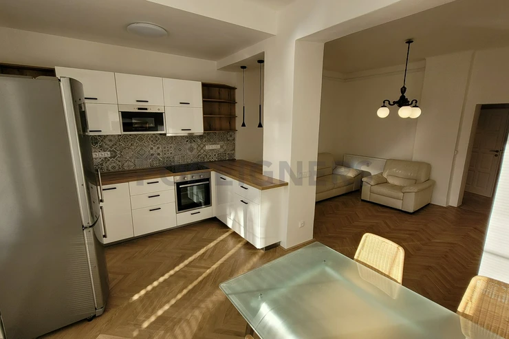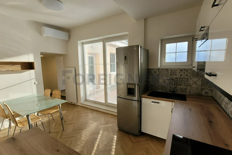 We are offering a unique, fully renovated 2-bedroom (3+kk) apartment located in the popular and quiet area of Brno – Žabovřesky. This exceptional property comes with a private garden, terrace, and a heated swimming pool, making it a truly rare find on the market.