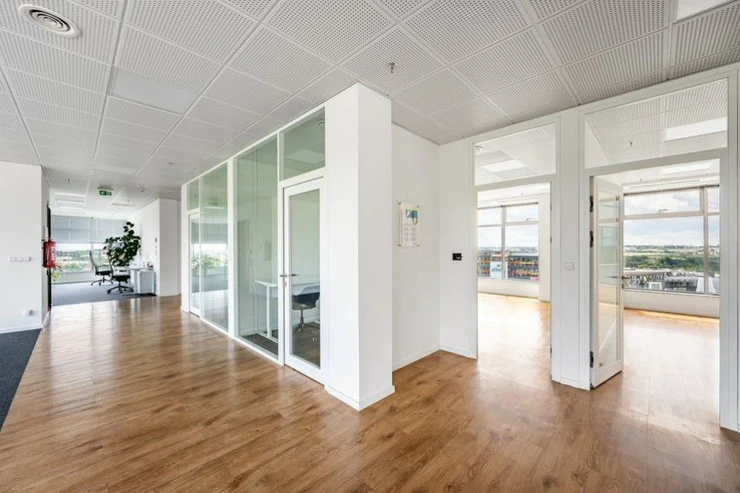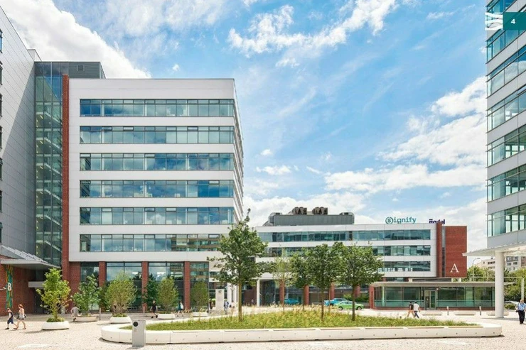 Services and equipment: reception, bike room with showers, parking for visitors, round-the-clock security service, low-energy LED lighting, optical cable, charging station for electric cars, dishwasher in the underground garage, opening windows, high-speed elevators and the possibility of temperature regulation in individual zones. The spaces can be arranged flexibly according to the client's ideas.