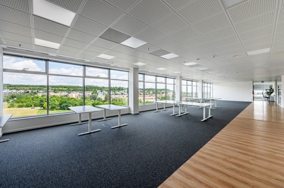 Rent of exclusive bright office space (487m2) with a beautiful view of Prague on the 7th floor with the possibility of parking in the underground garage (536 spaces) of building "C" of the administrative complex Coral Office Park in close proximity to metro station B- "Nové Butovice".