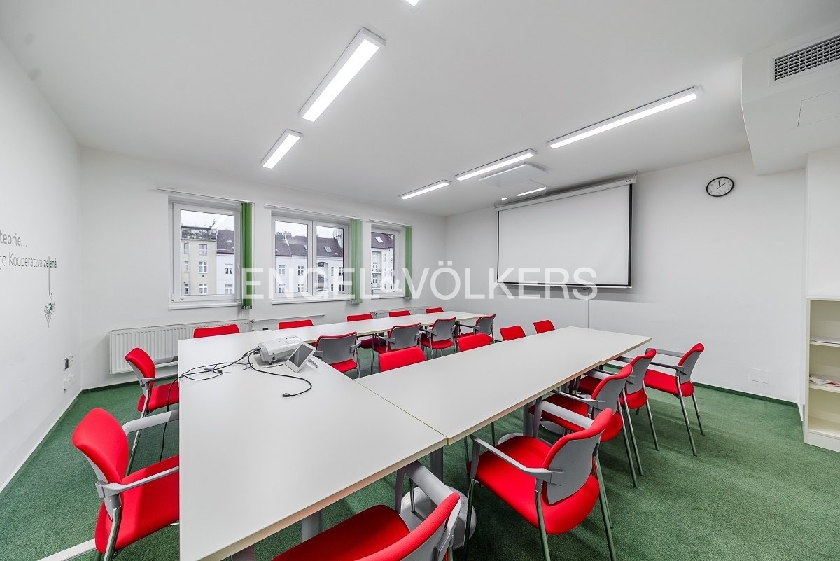 We offer for immediate lease a unique project consisting of two different apartment buildings - a historical gem and a modern building, which seamlessly combine the best of both worlds in the heart of Prague. The complex features a central courtyard that provides space for relaxation and practical parking. Individual floors are available for rent, offering plenty of spacious rooms and have air conditioning. The spaces are ideal for offices or classrooms. The location has excellent transport accessibility, the metro station A - Jiřího z Poděbrad is a 3-minute walk away, the tram stop Jiřího z Poděbrad is located directly in front of the building. For more information please contact me, I will be happy to arrange a personal tour.