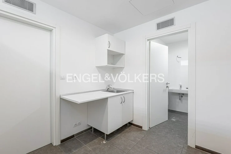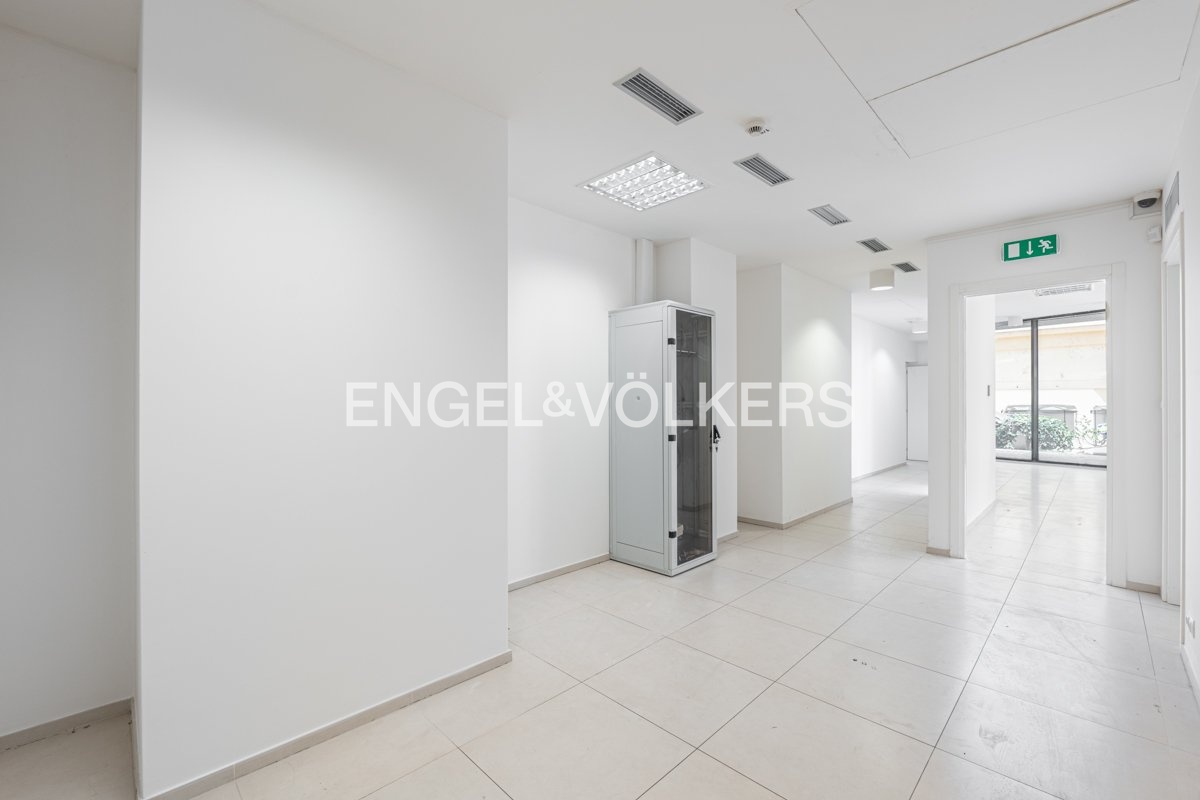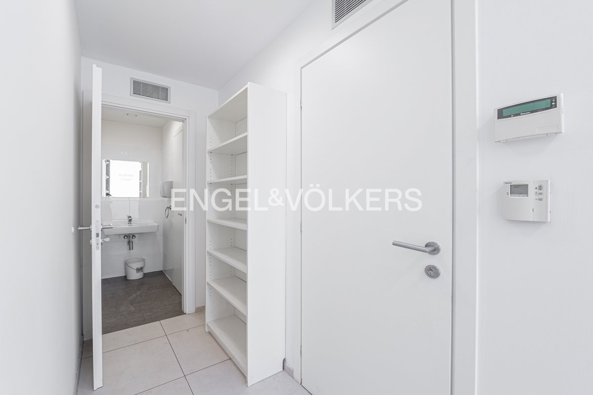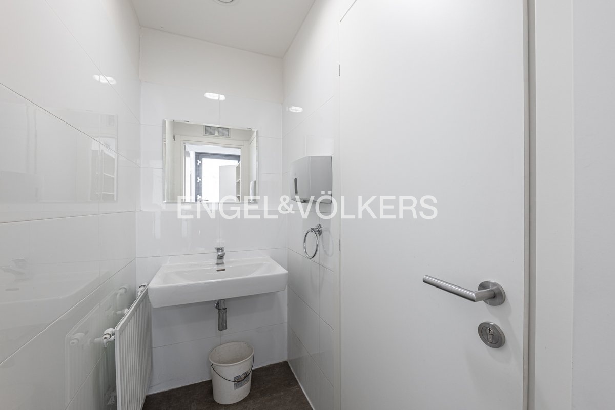 Upon entering you will find three rooms and a central corridor. In one room a sink is installed. In the corridor, there is a server for computers. There is also a separate toilet with a sink and a kitchenette. Air conditioning is installed in each room. The space is protected by a security system. Do not hesitate to contact me for more information or to arrange a viewing.