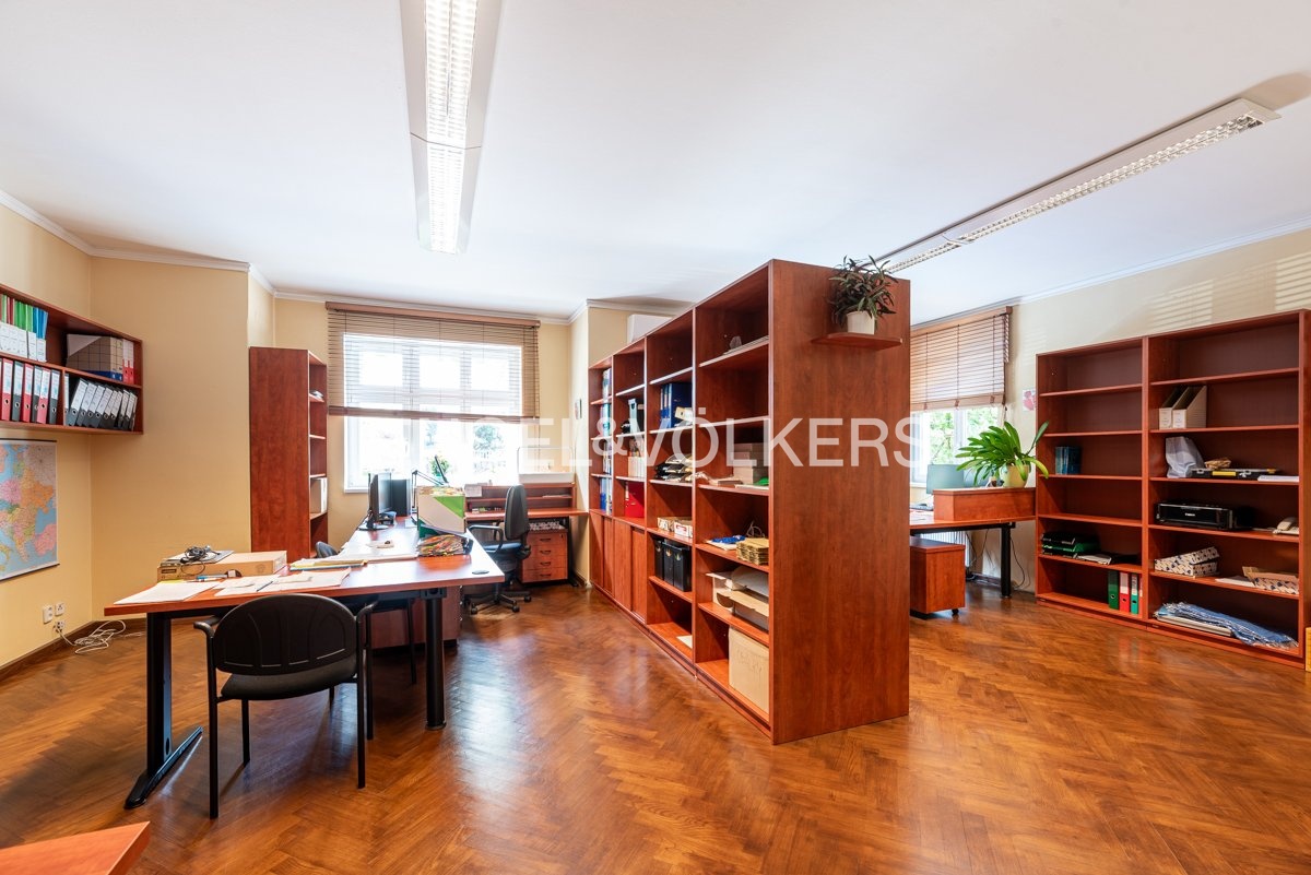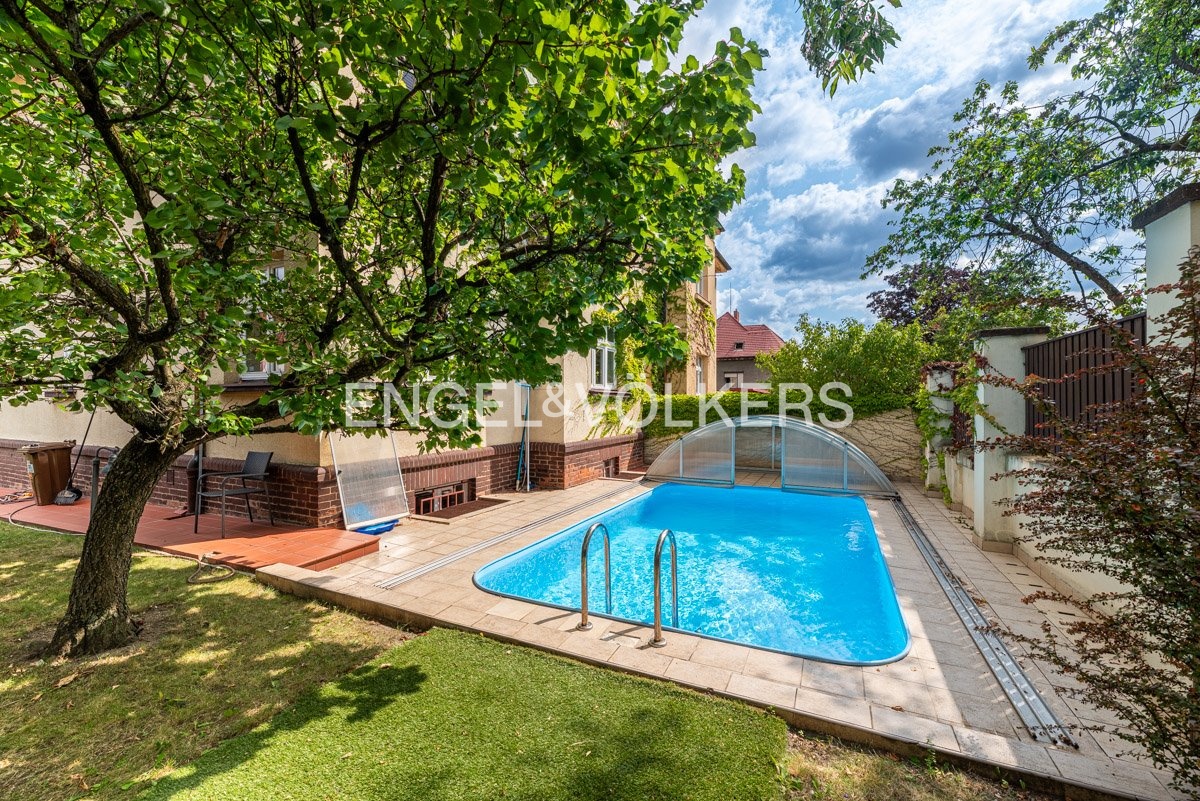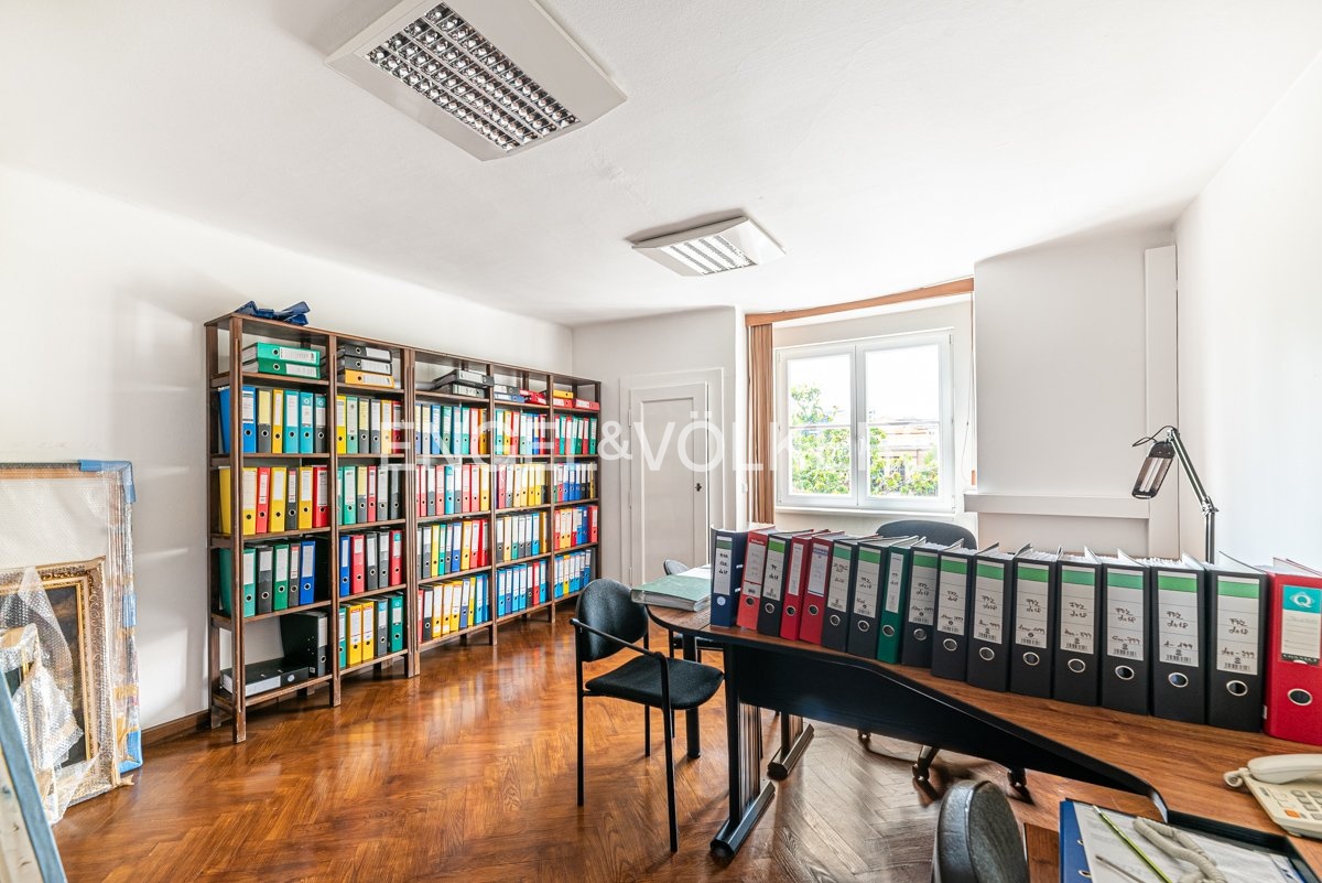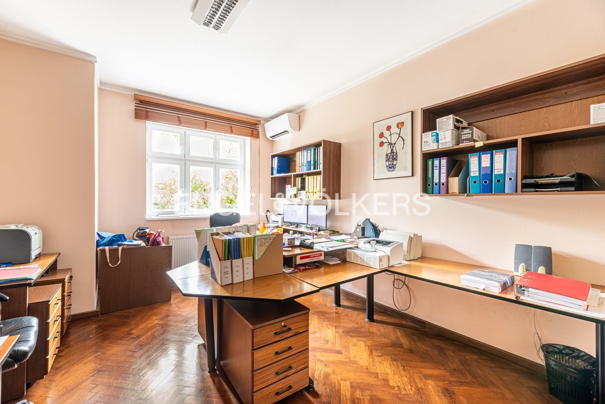 You can enjoy comfort and relaxation right at your place of business - the quiet green garden has its own seating area and swimming pool with retractable cover, in the basement there is a sauna and jacuzzi. The premises are suitable for a medium sized company looking for a comfortable and elegant headquarters where work will be a pleasure.
