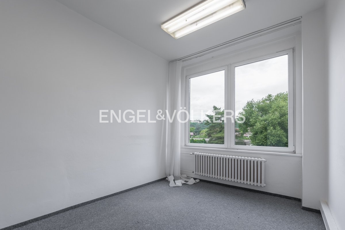 We offer office space in a quiet location Hodkovičky. The office is located on the second floor of the building and is accessible by a staircase. It is situated in two separate rooms. The office is equipped with carpet and office lighting. New carpet, redecoration and kitchenette can be arranged. Storage space in the building is available. There are separate restrooms in the central hallway. A great advantage is the parking spaces inside the complex. I am available for any further questions or to arrange a viewing.