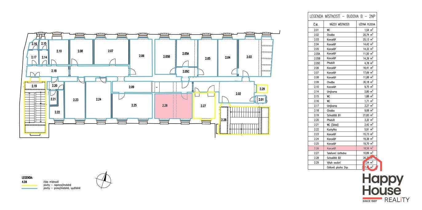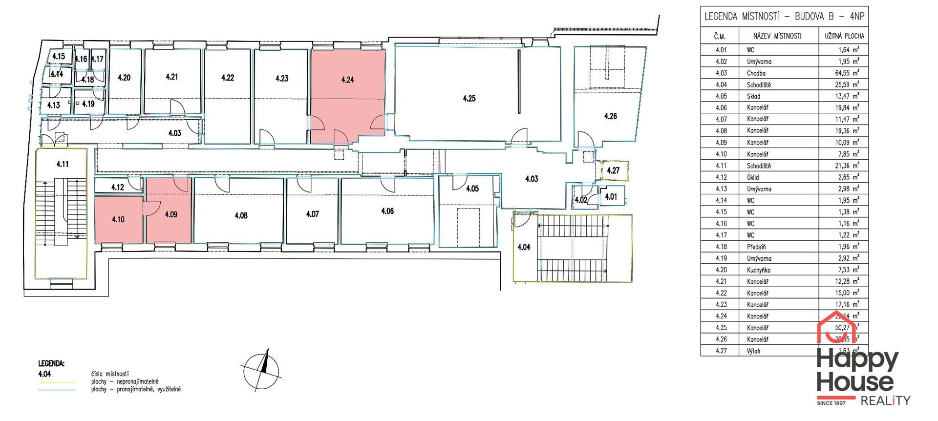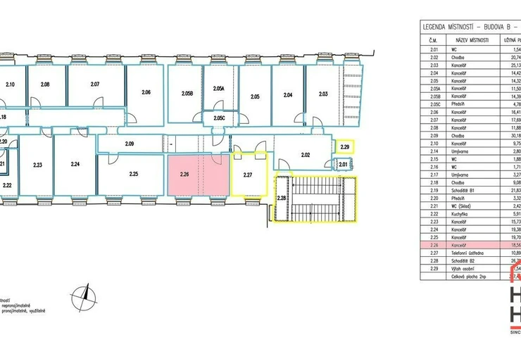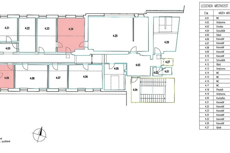 We offer for rent unfurnished office spaces in a brick administrative building with an elevator in a very attractive location of Prague 1 near Republic Square. The offer includes variously sized, enclosed offices on different floors of buildings A+B and garage space in bui. There are also common areas, which include a kitchenette and a bathroom with a shower and toilets. The floors have heavy-duty carpets and tiles. Air conditioning. Telephone - the building has its own telephone exchange, the number of lines is not limited, telephone sockets are distributed throughout the floor as standard. Internet - possibility to connect to the already prepared IT infrastructure in all areas, the main contractual supplier T-Mobile with a speed up to 30mb/s synchronously, the building also has its own telephone exchange, which also allows the use of ADSL/VDSL connection from O2. There are also temperature-controlled storage units with a loading ramp available. Security service 24/7. Possibility of garage parking for a fee (4,500 CZK/month). Some offices have equipment (see photo), which can be purchased from the current tenant.