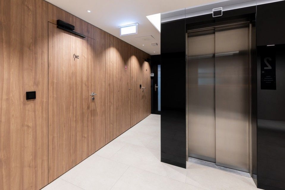 Technical specifications and services: canteen within the project, elevator, flexible spaces from 50 m2 to 1500 m2 on one floor, low ceilings including lighting, under-window distribution, cooling system with the possibility of individual regulation, reception and security 24/7, underground parking, outdoor parking for visitors (50 spaces), sustainability certificate BREEAM In-Use - "Very Good".