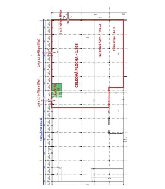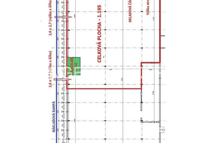 Lighting is solved by new LED lighting. The area allows access for TIR with a large handling area and one loading ramp. Possibility of renting offices in the complex and other areas for storage.