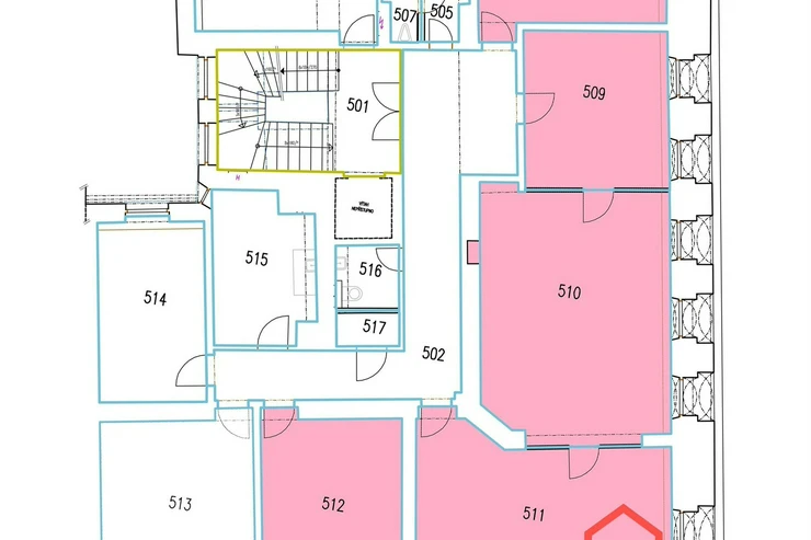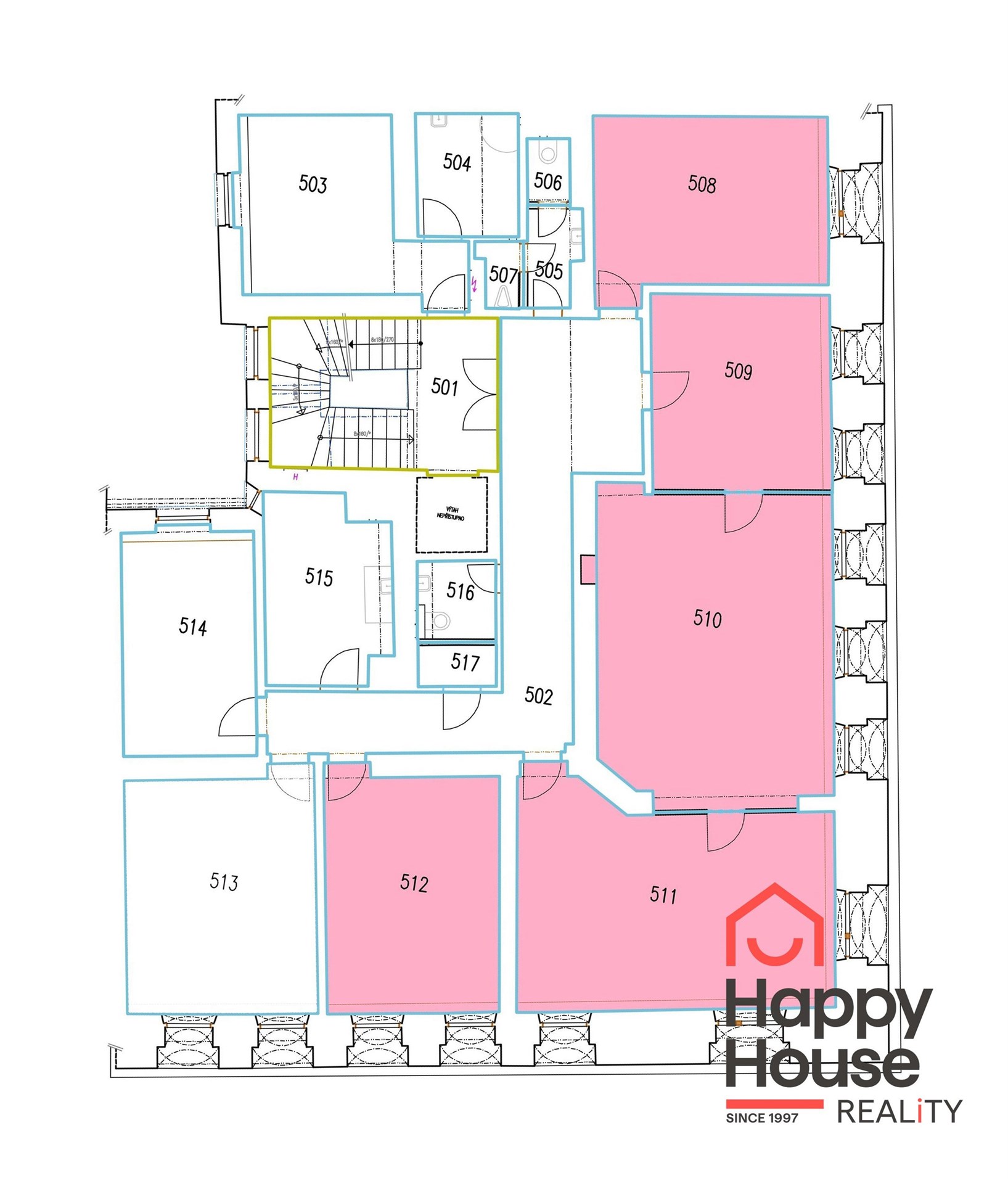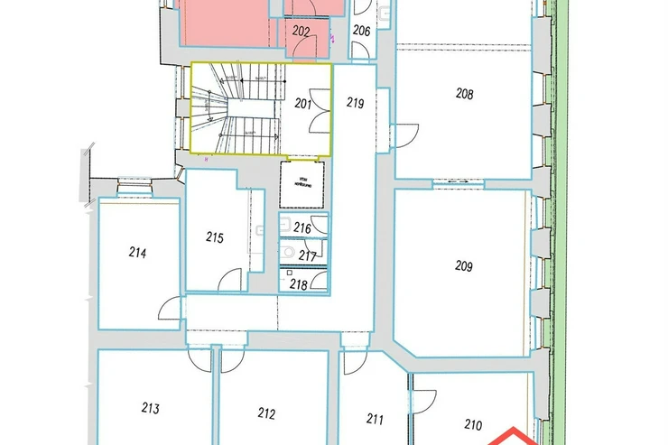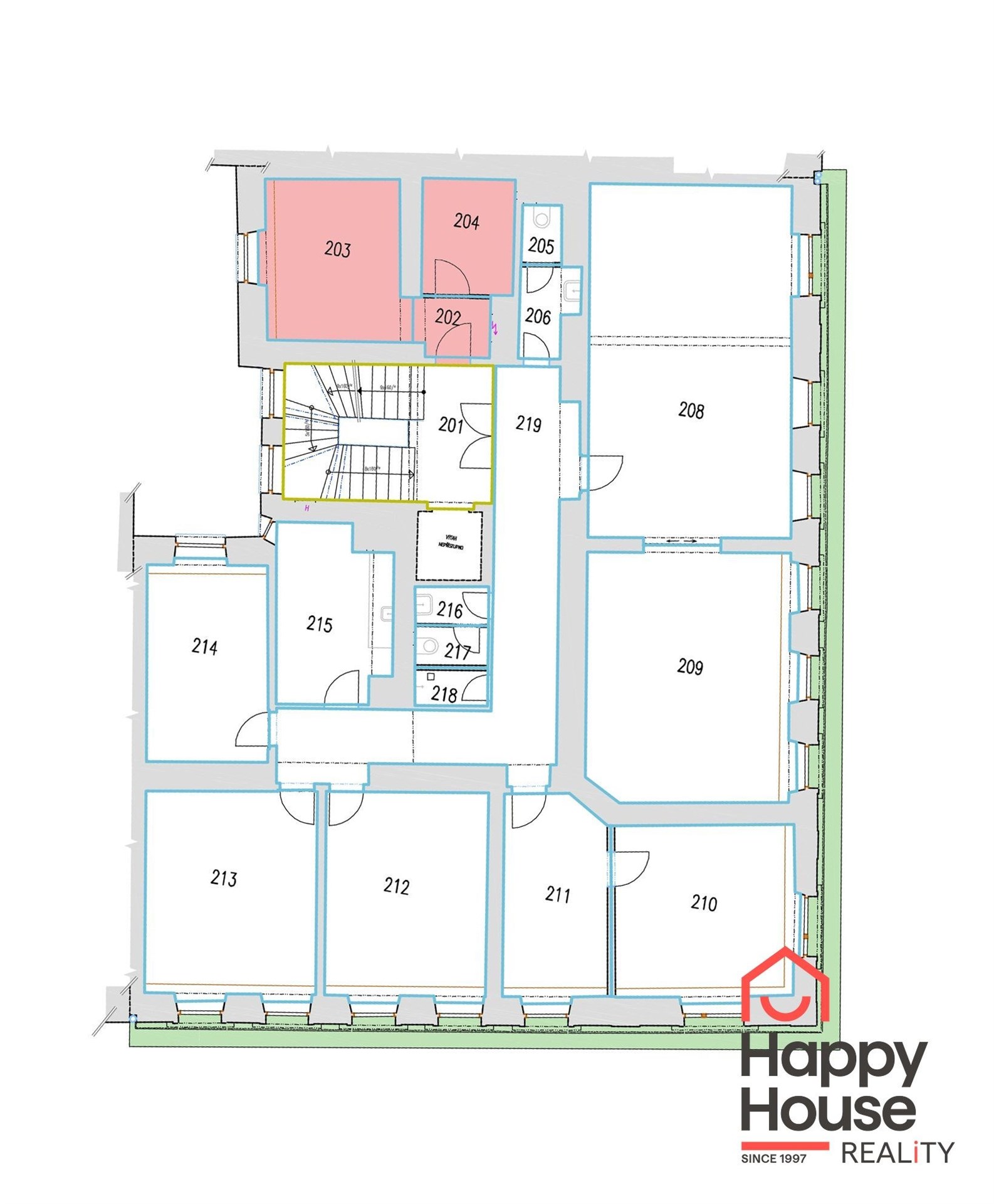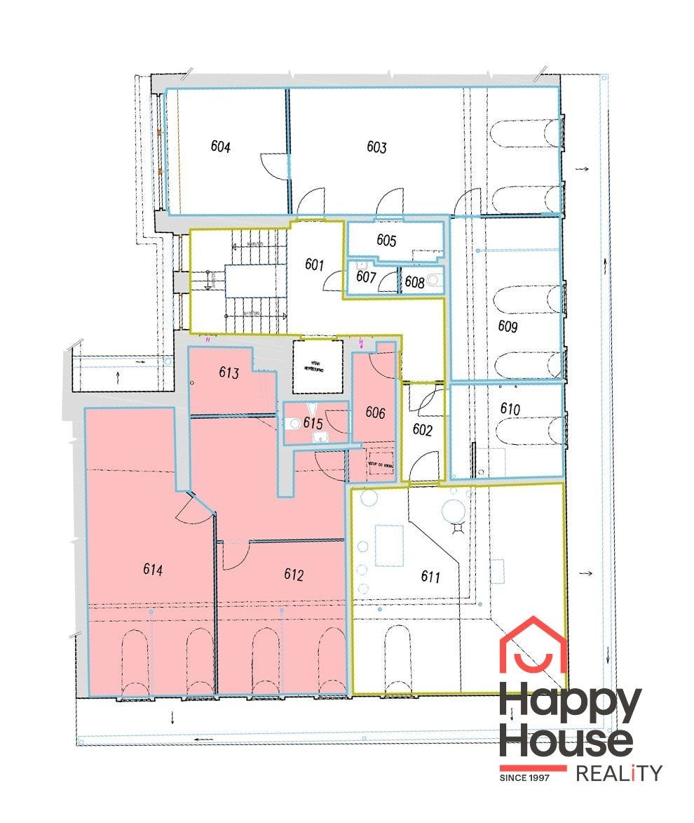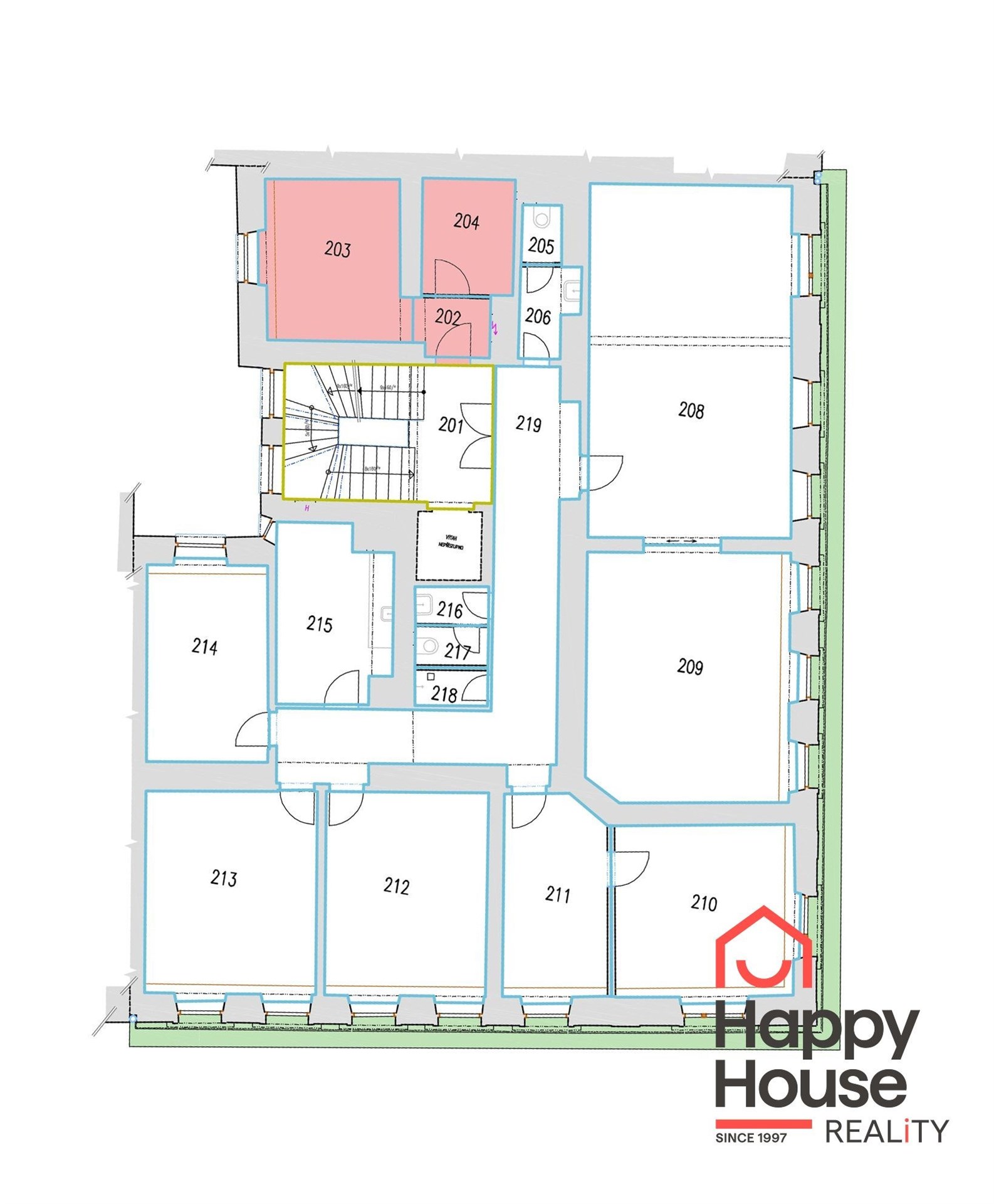 These are differently sized, unfurnished, air-conditioned spaces on different floors, with a shared kitchen and WC. Carpets, tiles. PC network, internet and telephone available. Originally an apartment building, it was rebuilt into an administrative building in 1993 during a comprehensive reconstruction, and in 2007 the interiors were modernized. Not far from the house there are parks Vrch Vítkov and Parukářka. All civic amenities in the area. Transport accessibility from the bus or tram stop, which are located about 4 minutes walk from the house. Utilities fees are paid separately + VAT, the security deposit two monthly rents including fees. Parking in the neighboring building. The PENB card is not available, therefore class G is indicated. Photo illustration.