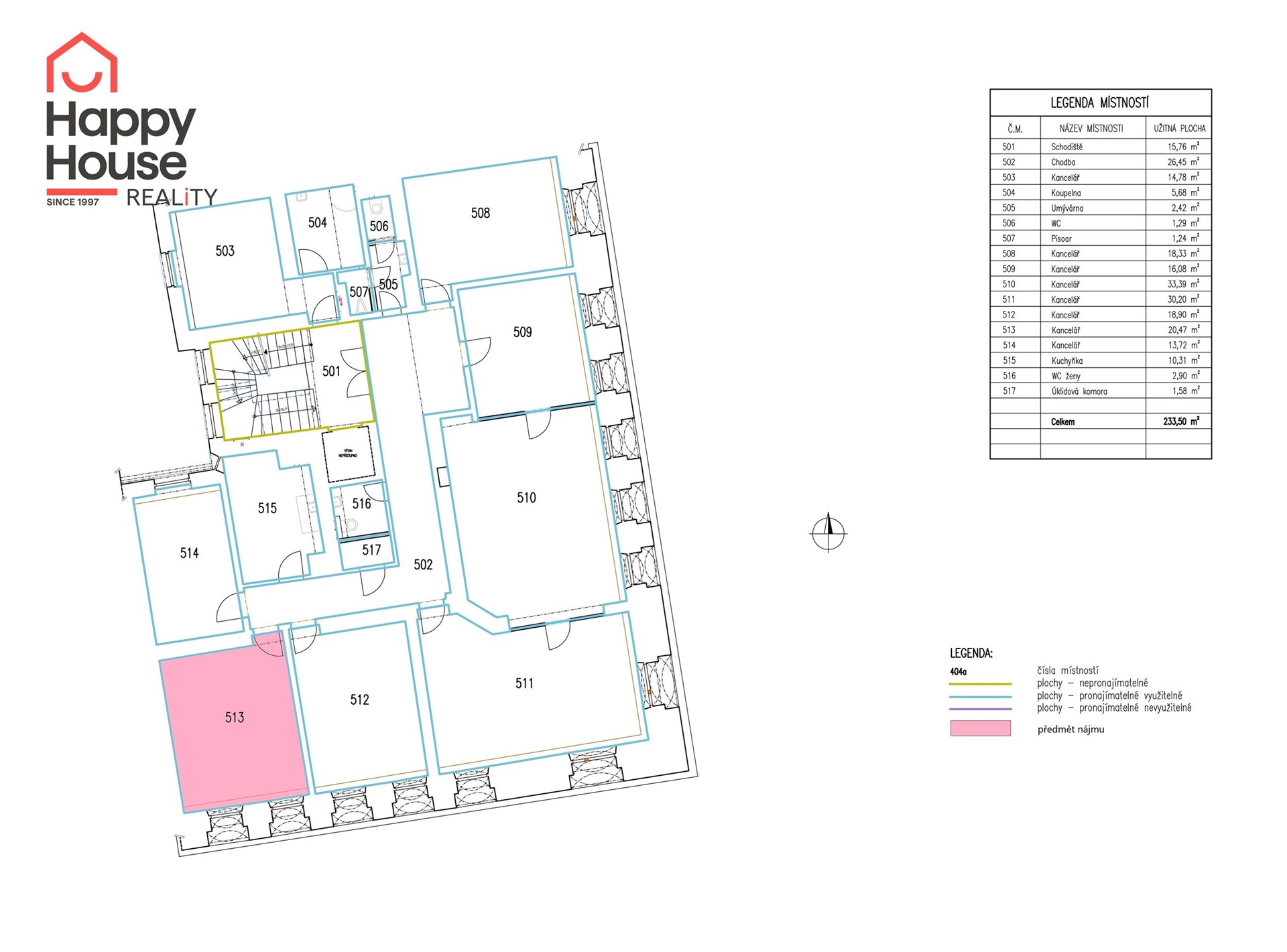 We offer for long-term rent office, unfurnished, air-conditioned spaces on different floors, with a shared kitchen and toilet in Prague 3 Žižkov. Originally an apartment building, it was rebuilt into an administrative building in 1993 during a comprehensive reconstruction, and in 2007 the interiors were modernized.