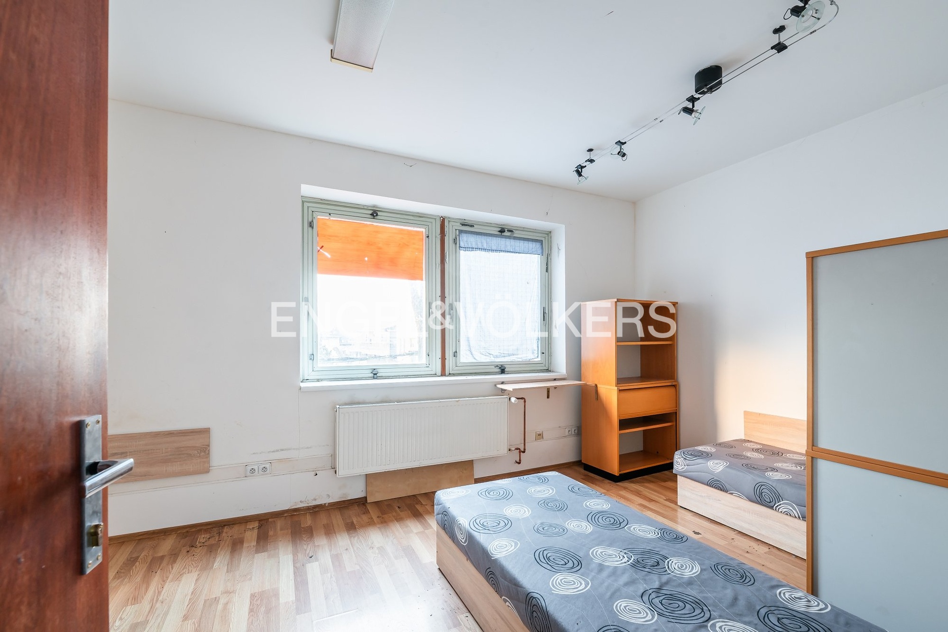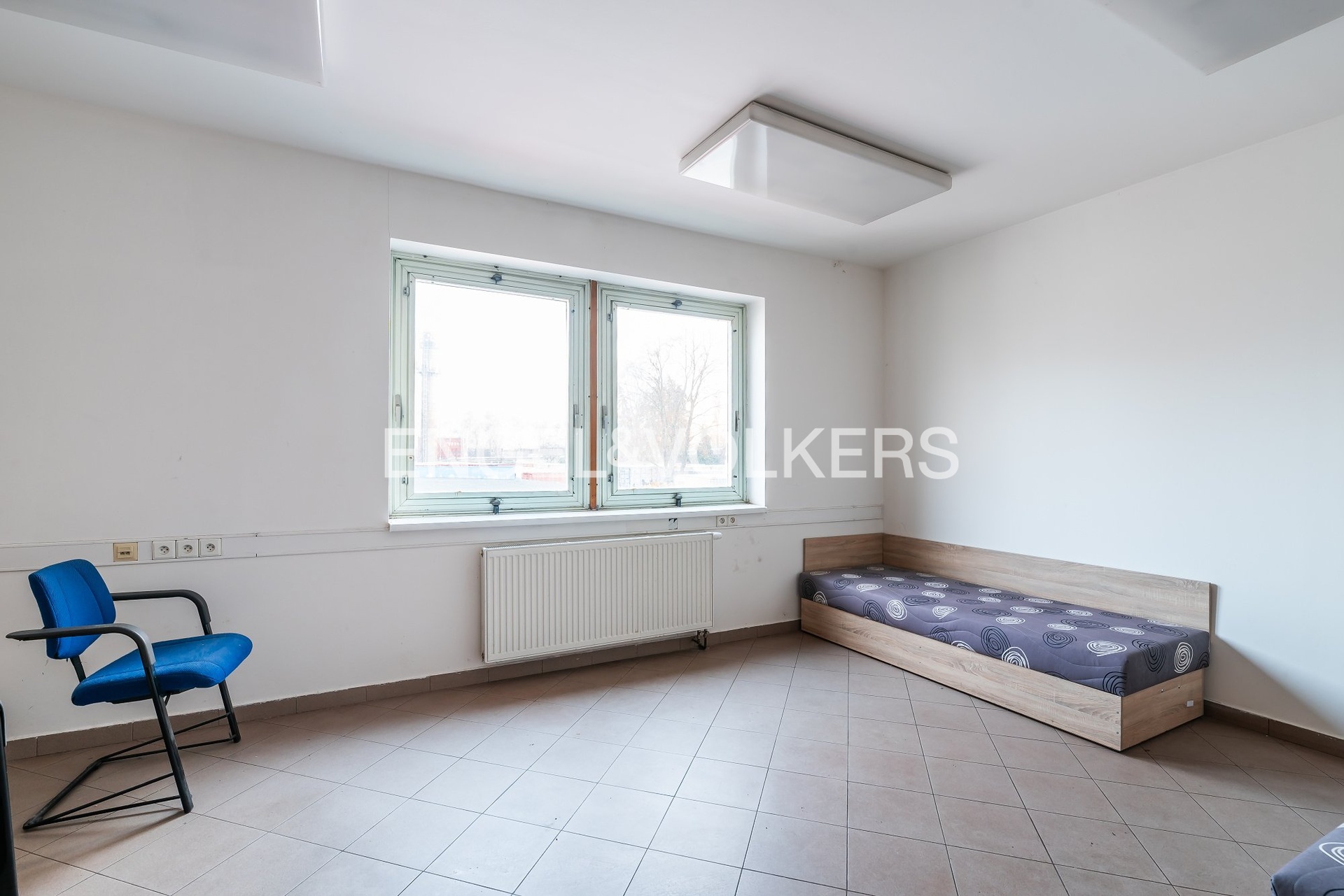 The two-storey office building is partially underground. The basement contains a boiler room and storage space. The vertical structures on the 1st floor are brick and provided with insulation, while on the 2nd floor prefabricated structures and metal columns are used. Three staircases connect the two floors. The building offers offices, a meeting room and, due to its layout, can be used as an office or accommodation facility.