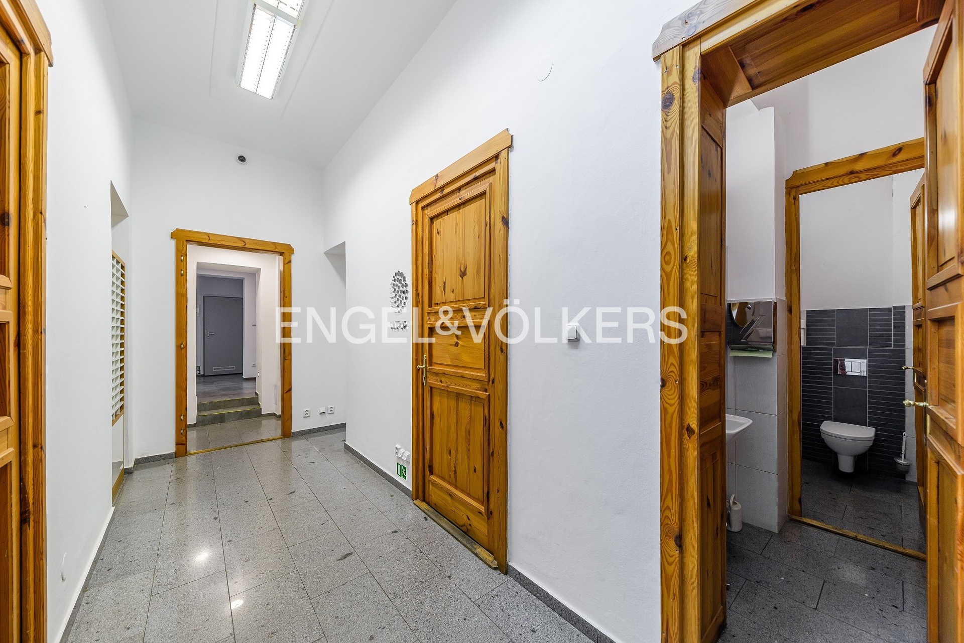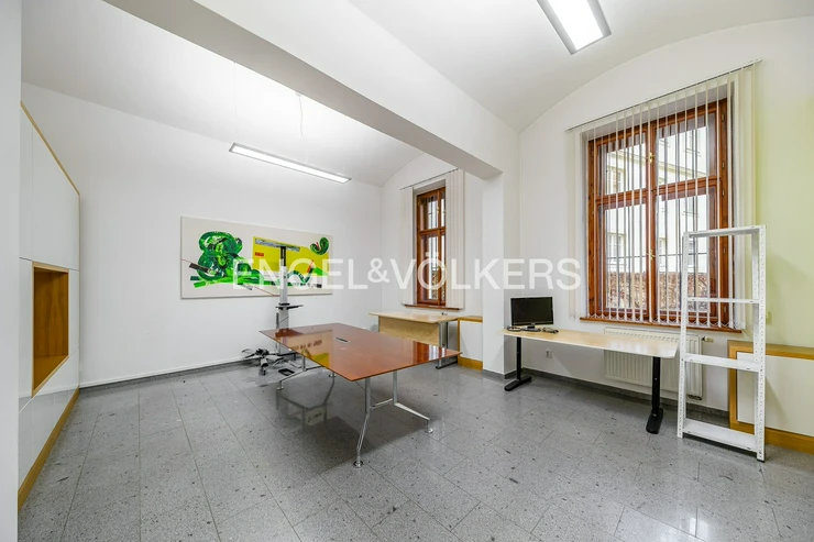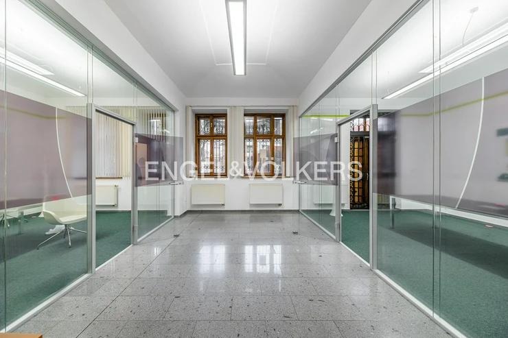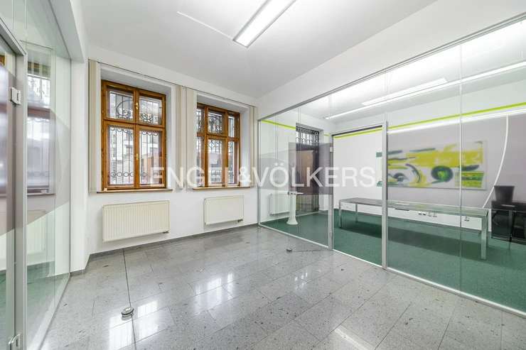 We offer commercial space for rent in a busy location in Nusle with excellent transport accessibility. The premises, located on the first floor (ground floor) are suitable as a representative headquarters, showroom, branch, or also for physiotherapy or surgery. The building is located in the immediate vicinity of the tram stop Otakarova and within walking distance of the stops Divadlo na Fidlovačce and Náměstí Bratří Synků. It is possible to rent parking spaces in the courtyard or on a private plot across the road for an additional fee. The premises have two entrances directly from Bělehradská Street and a third, side entrance to the courtyard. It consists of four rooms, three facing the street are separated by glass walls.