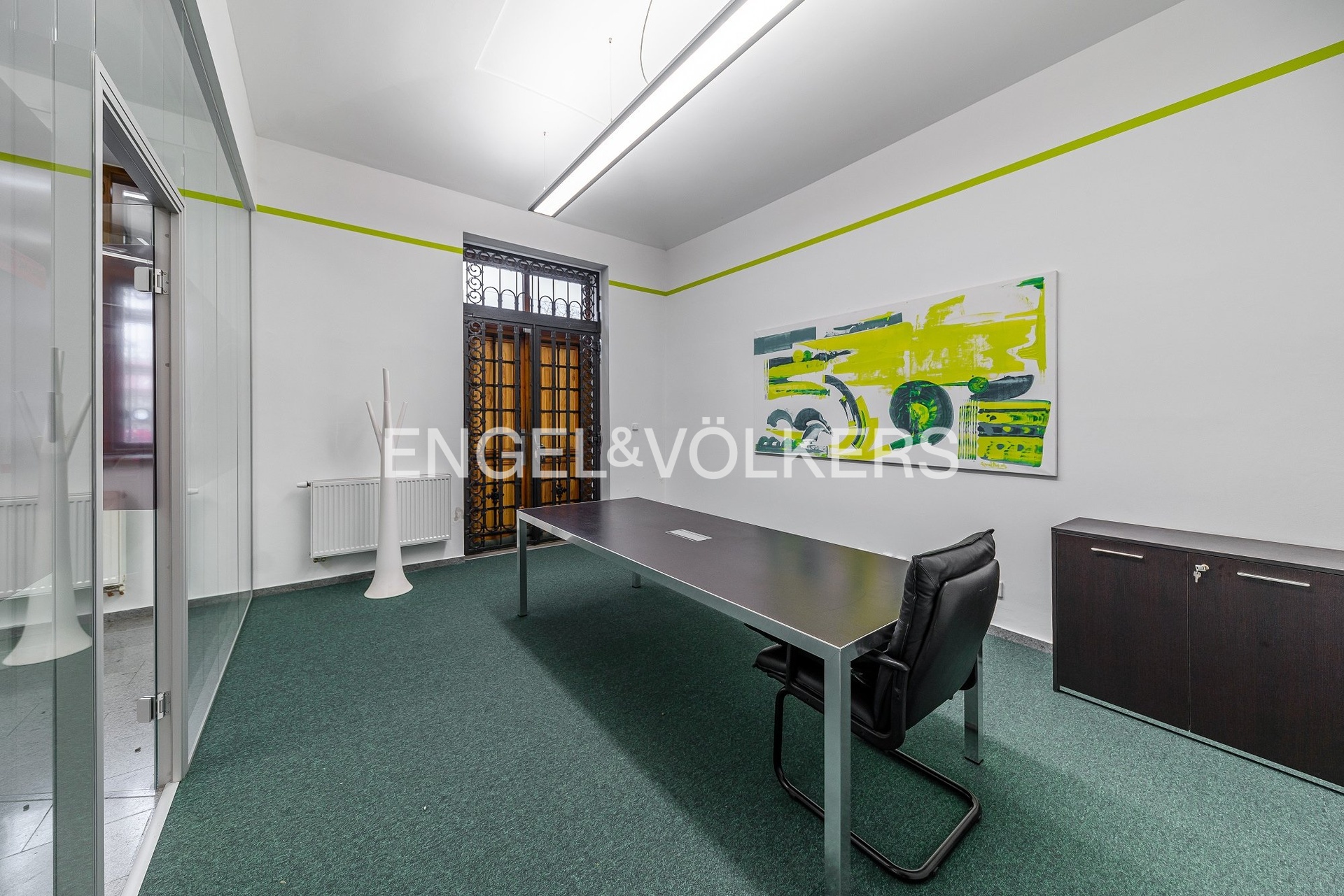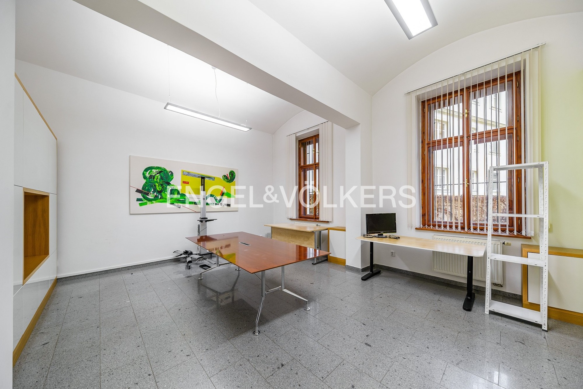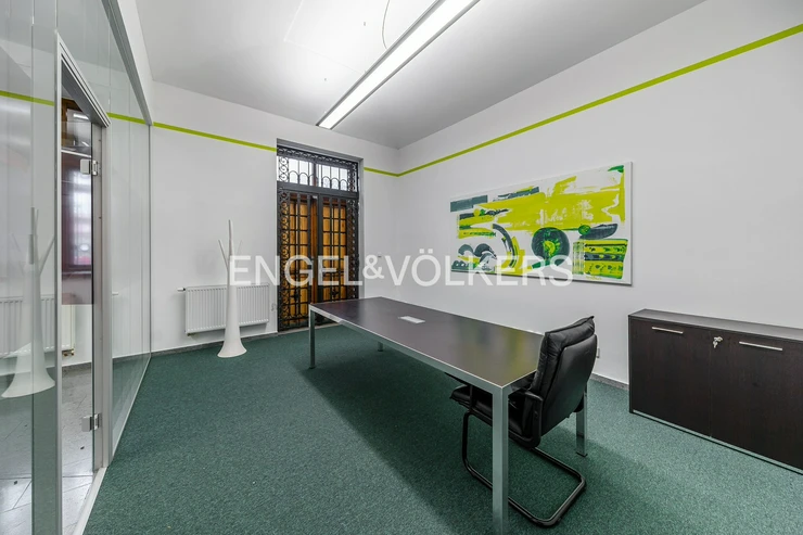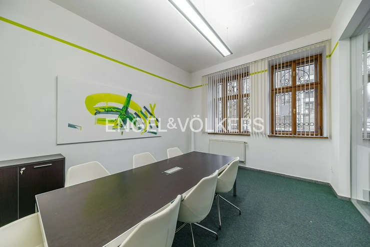 The back room is suitable as a large meeting room or also a consulting room - the location of the steps allows to set up water access. The floors are covered with a combination of weighted carpet and tile, and the space has office lighting. The doors and double glazed opening windows are timber. The windows are barred and have vertical fabric blinds on the inside. The back room consists of a toilet and wash hand basin in the front room. Furnishings (tables, chairs) can be purchased. There is also a possibility to enlarge the premises by the premises for rent in the adjacent building, the premises are connected by a door. Call to arrange a viewing.