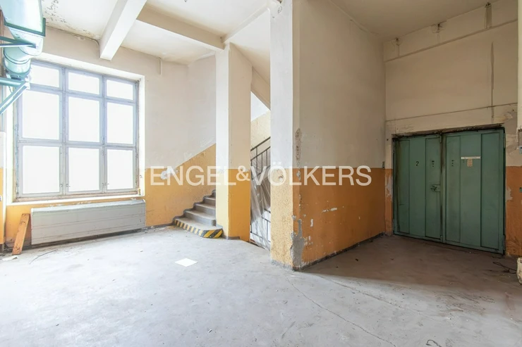 There is an elevator in the building, now non-functional, but can be put into operation after agreement with the owner. On the floor, there are also social facilities. The main entrance to the building has dimensions: height 2,7m and width 2,2m.
