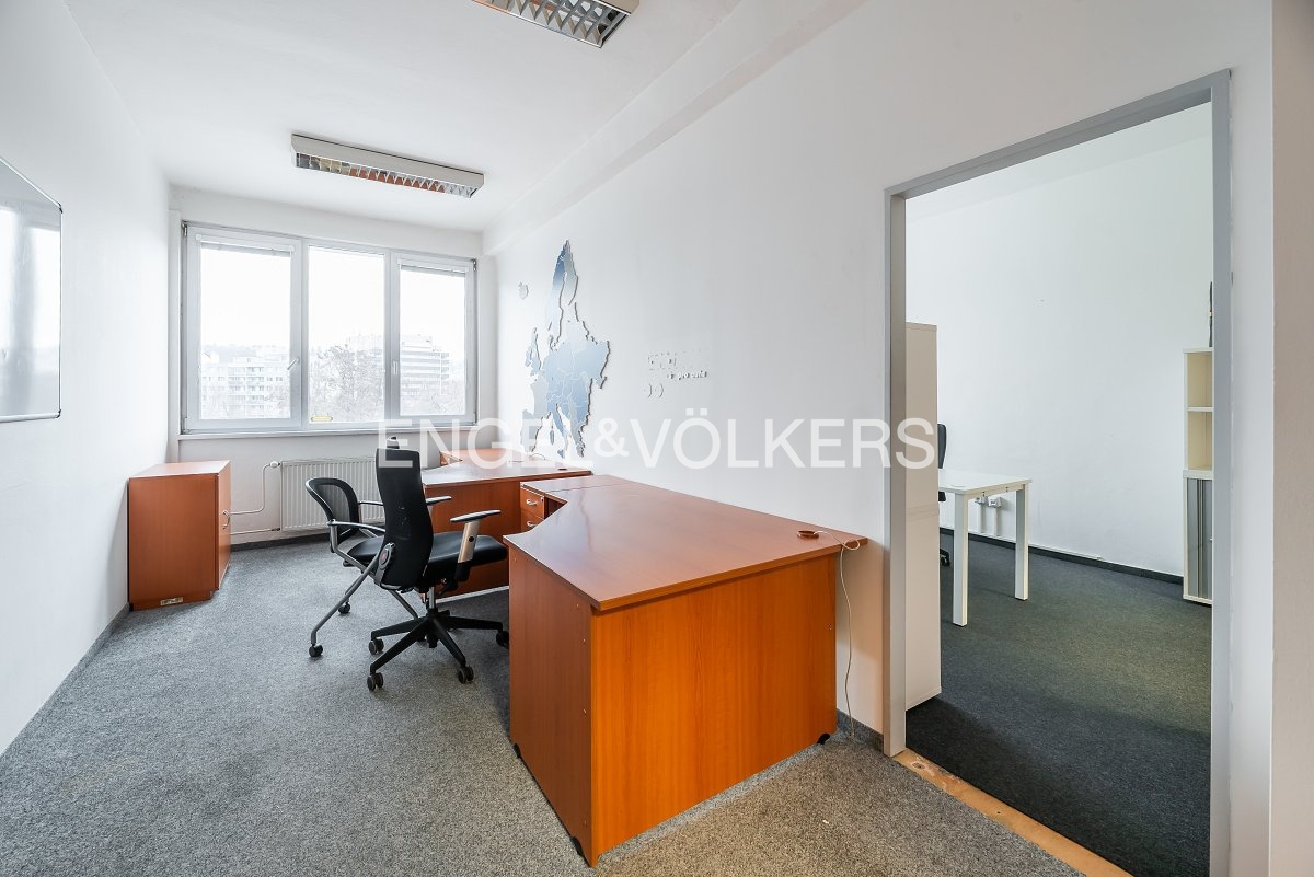 Office space is now available for rent in this large complex, with several office units available. All spaces face north and offer views of the park. Each office space has its own restroom facilities for employees, ensuring maximum comfort and privacy. The building is equipped with high-capacity elevators that provide convenient access to each floor, and the basement has a spacious bicycle storage room with changing rooms and showers.