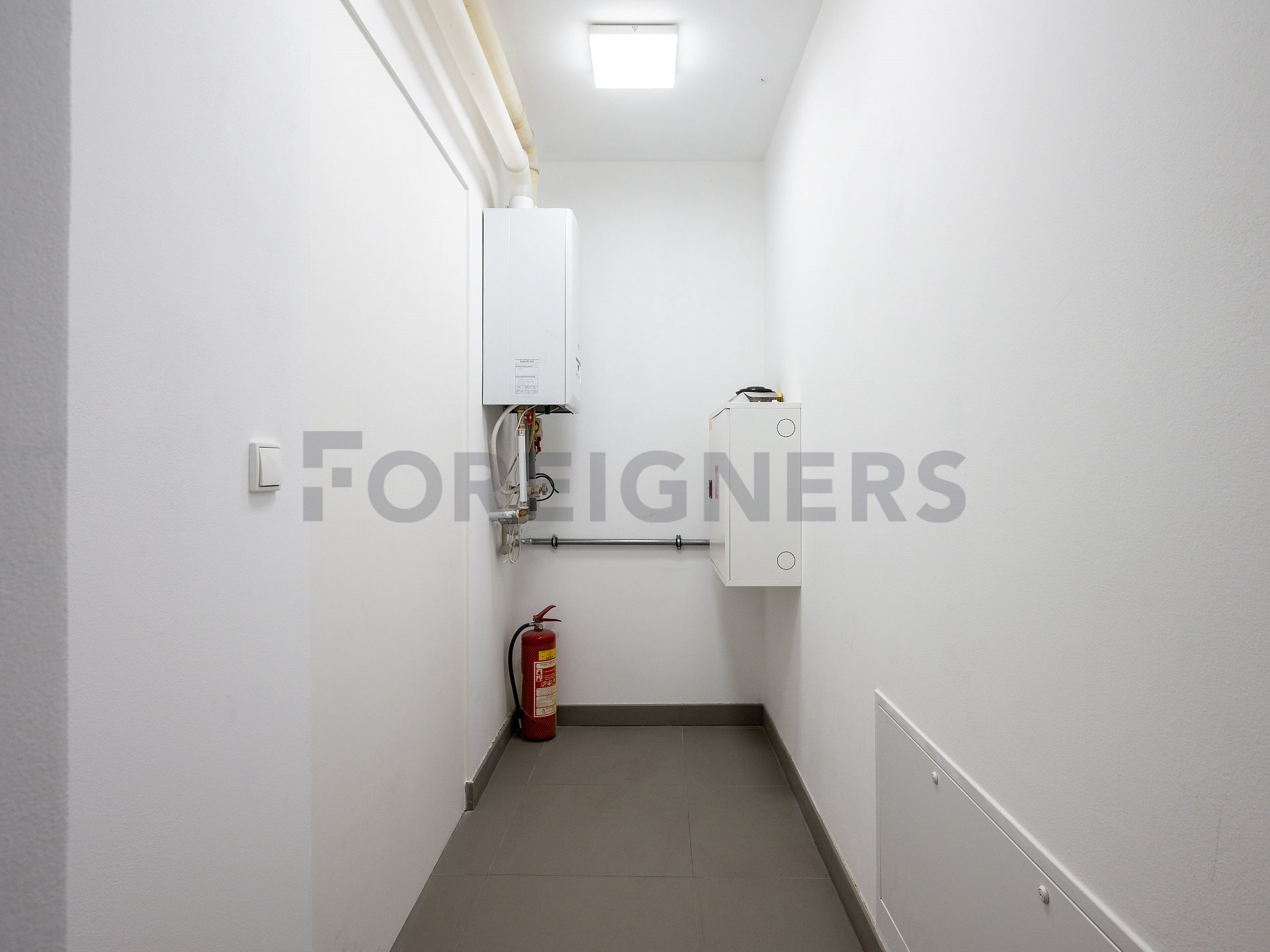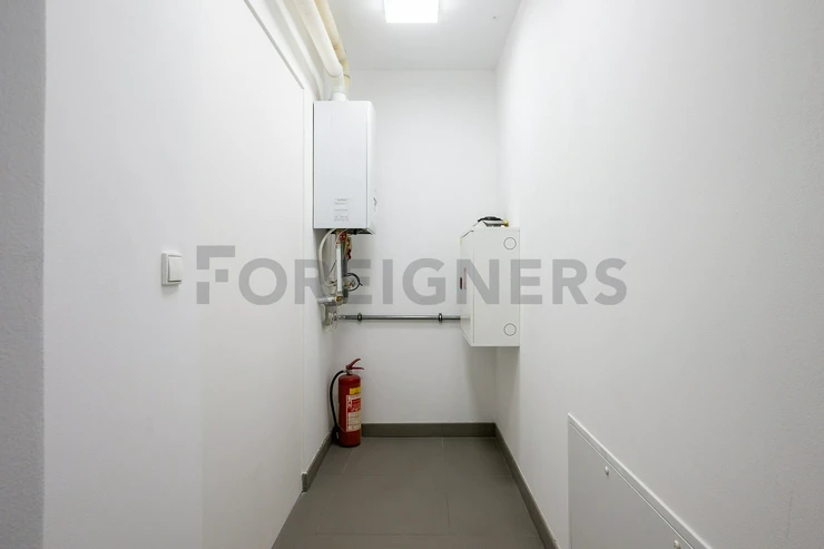 The commercial space is available for rent unfurnished. Any existing equipment in the space can be purchased from the current tenants based on mutual agreement.The space is equipped with underfloor heating and a gas boiler. The space is also equipped with air conditioning. The gas boiler is located in the hallway, which is also accessible to the other commercial space, Infinite.