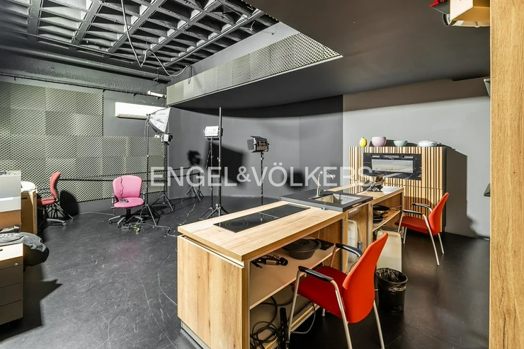 The premises have a separate entrance from the street and the possibility of using the reception. The premises include a separate television studio, a dedicated studio for filming culinary shows, a director's room, a rest room, a dressing room, a costume room, a server room, technical facilities and sanitary facilities. The premises are professionally soundproofed and fully air-conditioned.