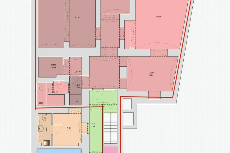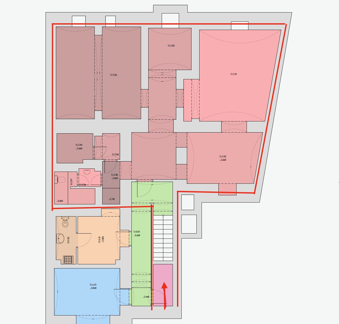 This space is located on the first underground floor and is in shell&core condition. Thanks to that it offers unlimited potential for your business. The space is divided into several rooms with a total floor area of 105 m² - see floor plan. There is a gas connection to the space. The heating system is purely up to your choice - all options are acceptable (gas boiler, electric boiler, direct-fired heaters, heat pump, etc). There is also preparation for air conditioning and fresh air supply is provided.
