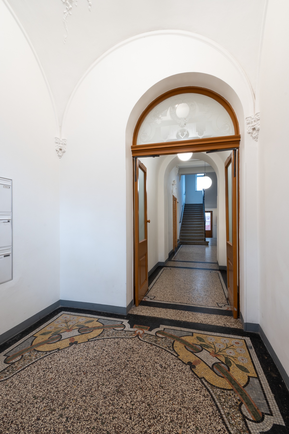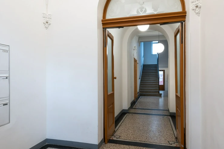 We offer for rent a commercial space in a historic building at the prestigious address Pařížská street in the center of Prague 1.