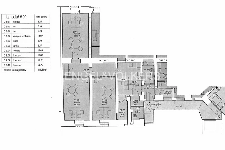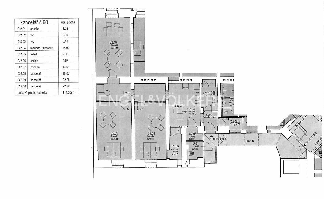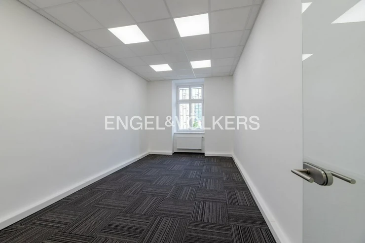 The layout of the unit is designed as an entrance hallway, reception, kitchenette, back office and three separate offices - ideal for financial, accounting, legal or consulting firms, or for other administrative activities.