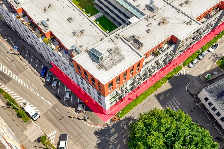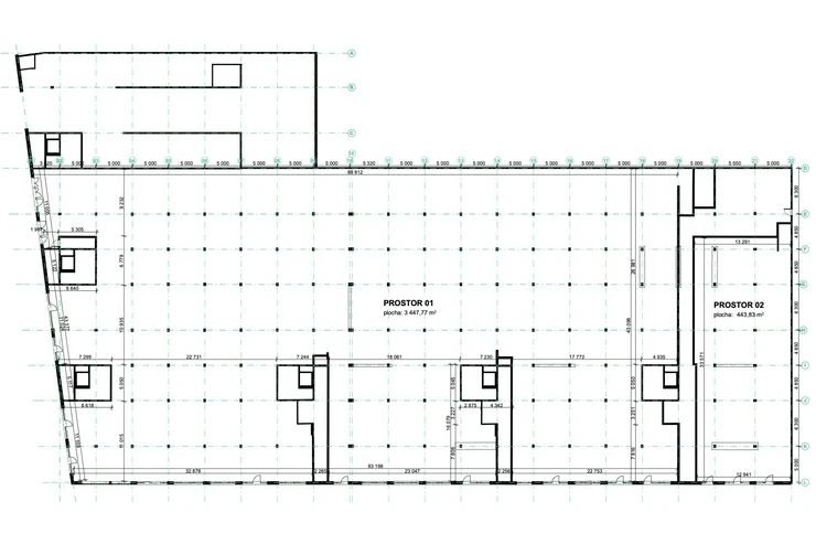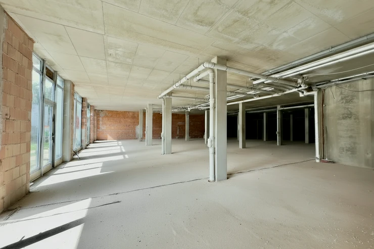 The basic unit has an area of 444 m², additional parts can be added up to the entire area, in modular blocks of approx. 600 m². With large shopfronts facing the street, the space is ideal for any operation that wants to be visible - be it catering, showroom, retail, service, fitness, office or medical facility.