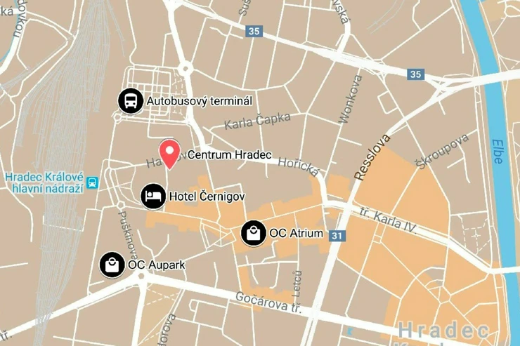 In the heart of Hradec Králové, just a few steps from the main train and bus station, right next to the Černigov Hotel and within walking distance of Riegrova Square, we offer exceptionally flexible commercial space with a total area of up to 3,500 m².