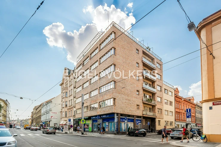 The property is located in a historic tenement house on the busy Štefánikova Street with excellent public transport accessibility - the Arbesovo Náměstí tram stop and Anděl metro station are nearby.