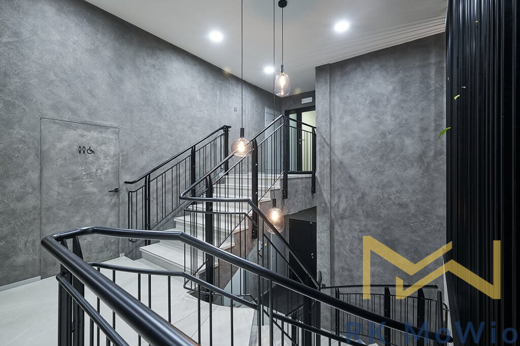 The building provides 24/7 security surveillance, professional guarding, and a representative reception, ensuring smooth operation and a warm welcome for visitors. Tenants have access to shared kitchenettes, restrooms, and showers on each floor. Selected units also feature quiet courtyard terraces, ideal for relaxation or informal meetings. The offices are designed with an emphasis on comfort and functionality, featuring air conditioning and optical internet connection. Access to the premises is secured via electronic entry cards.