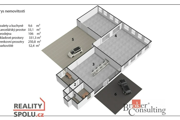Parkoviště před prodejnou (52,4 m²) – pohodlné parkování pro zákazníky i zaměstnance