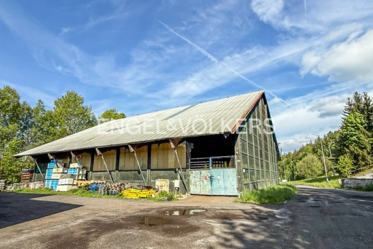 We offer for rent a wooden hall with a total area of 744 sqm, located in a fenced area on the outskirts of Hodkovice nad Mohelkou. The building is suitable for a wide range of uses, such as storage of materials, equipment, vehicles, or other facilities. The complex is accessible via a paved road, and the entrance is wide enough for truck traffic. There are two entrances to the hall, each with a 4 × 4 m gate. The hall has a gabled (metal) roof with a clear height of 6 meters at its lowest point and 8 meters at its highest point. A paved outdoor area of 500 sqm can be used for CZK 15/.qm The advantage of this offer is its strategic location near the D10 motorway – Prague is approximately 100 km away, and the German border is only 39 km away. The premises will be available for rent from November 1, 2025. If you are interested in a tour or additional information, please contact us.