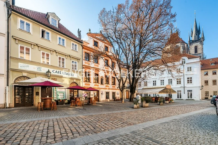 We offer for rent an exclusive restaurant in the historical centre of Prague, on Týn Street. The space is licensed for gastro operation and has all the necessary equipment. The restaurant is divided into two floors (ground floor and basement) with the main entrance from the street. In the client area, there are wine taps, and the interior is equipped with a combination of wooden flooring, tiles and stone and brick elements on the walls. There is a fully equipped kitchen, HVAC throughout and air conditioning on the ground floor. In the basement, there is a historic illuminated well, a glass wine room, and a storage area with a cold storage (2.2 x 1.2m).
