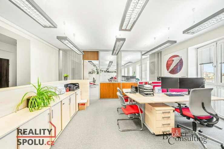 Dispozice prostor je navržena s důrazem na funkčnost a reprezentativní vzhled. Součástí je vstupní recepce, která zajišťuje profesionální první dojem pro vaše klienty a obchodní partnery. Na ni navazuje velký sdílený otevřený prostor, ideální pro týmovou spolupráci nebo coworkingové využití.