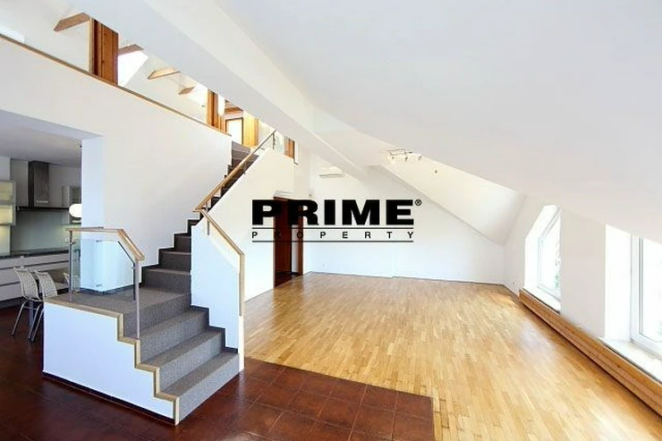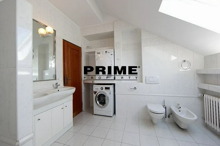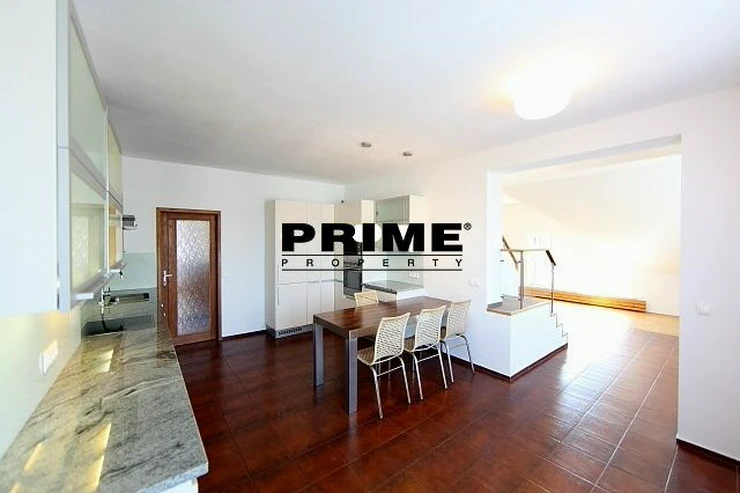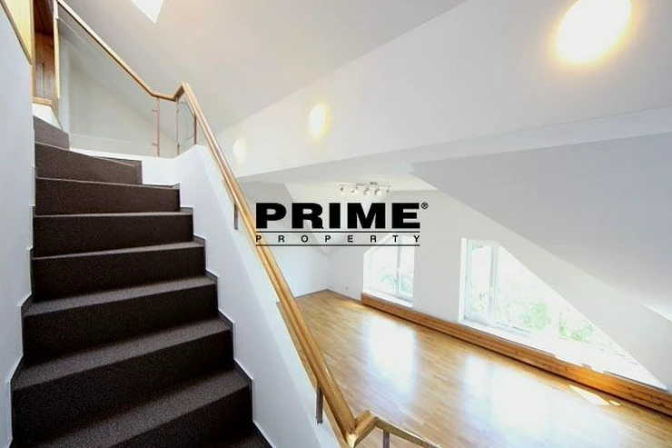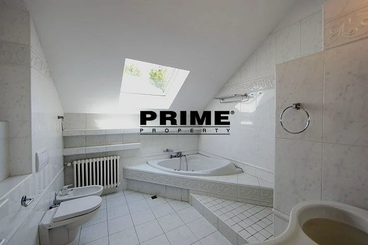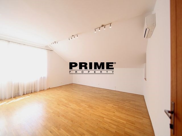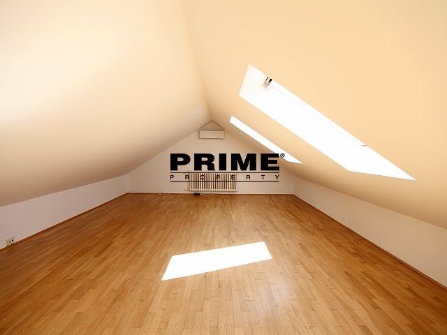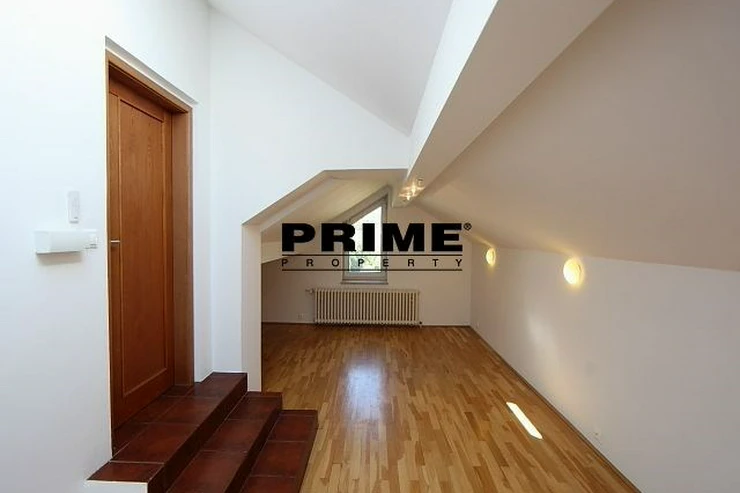 Spacious, air conditioned, unfurnished duplex apartment for rent, suitable also for quiet office use, 6+1, 293m2, with a 10m2 terrace and a garage, situated on the 1st and 2nd (attic) floors of a large villa. The property is located in a green, residential area on the boundary line of Hodkovičky and Braník, very close to a bus stop (30 minutes by public transport to the city center), 2 minutes´ drive to Novodvorská shopping mall and 15 minutes´ drive to the city center. Tennis courts, a golf course, a beach volleyball court, cycling and jogging paths are nearby.