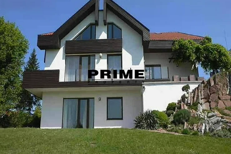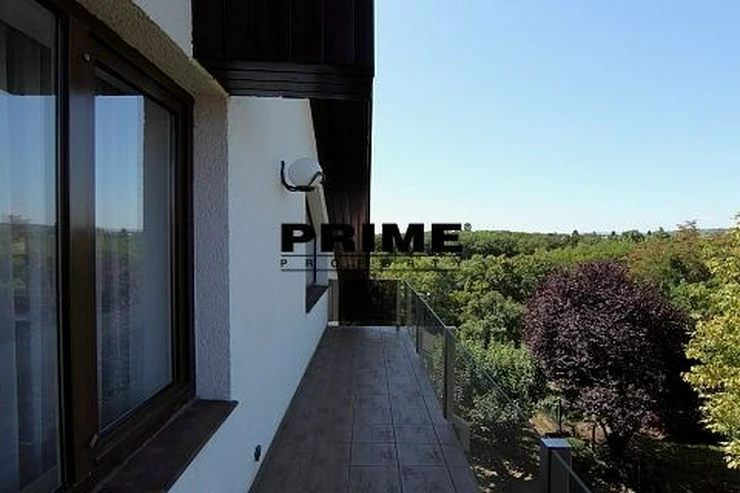 The property has views of greenery. The lower level comprises: an entrance hallway with built in cupboards, a spacious room connected to a 25m2 fully fitted kitchen with appliances (electric cooking hobs, oven, dishwasher, refrigerator and a microwave oven), 4 more rooms (one of them is walk through) and two bathrooms (one with a massage bathtub, shower cubicle, double sink, toilet and a bidet and one with a shower cubicle, sink and a toilet). The upper level: a spacious carpeted gallery and one more separate room. The property also has a terrace.