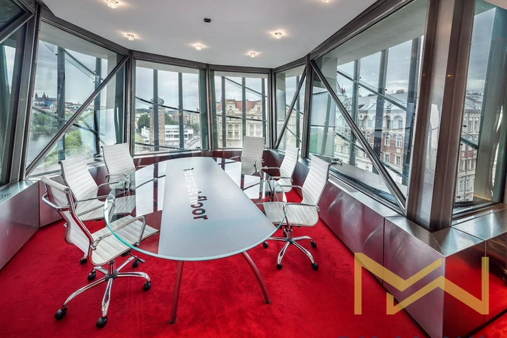 We offer for rent a representative office with a total area of 30 sqm, located on the 5th floor (6th above-ground level) of the iconic Dancing House on Jiráskovo Square, Prague 2 – New Town. This prestigious address offers not only excellent accessibility but also a unique working environment. The building features a 24/7 reception, modern elevator, and the possibility to rent a meeting room. The office is equipped with air conditioning and high-speed optical internet connection, ensuring maximum comfort and work efficiency. The premises are under continuous surveillance and secured by a professional security service and camera system.