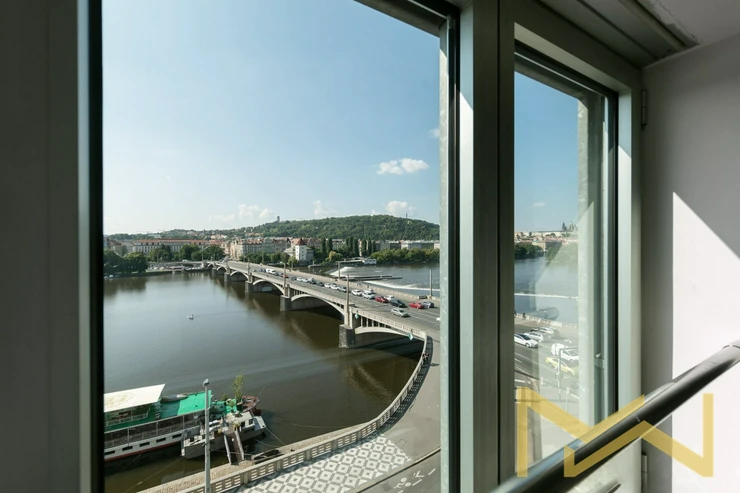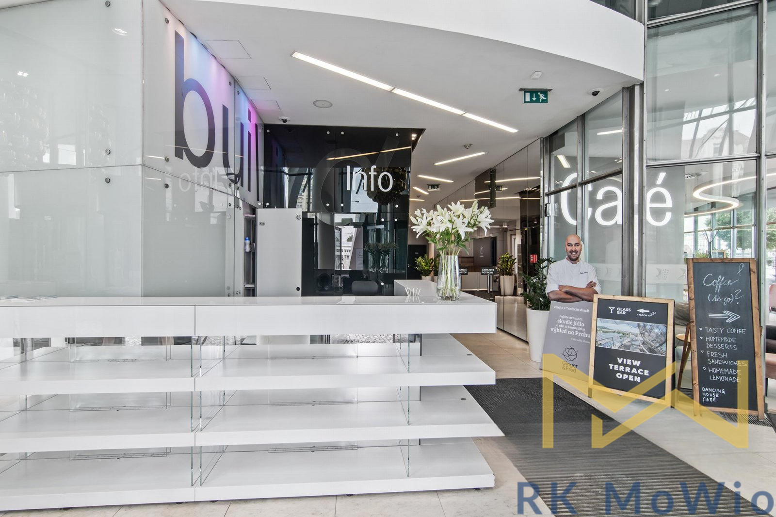 A unique benefit of this building is the rooftop terrace with panoramic views of Prague Castle and the Vltava River. The top floor hosts an elegant restaurant and a stylish bar – ideal for informal business meetings or relaxing after a busy day.