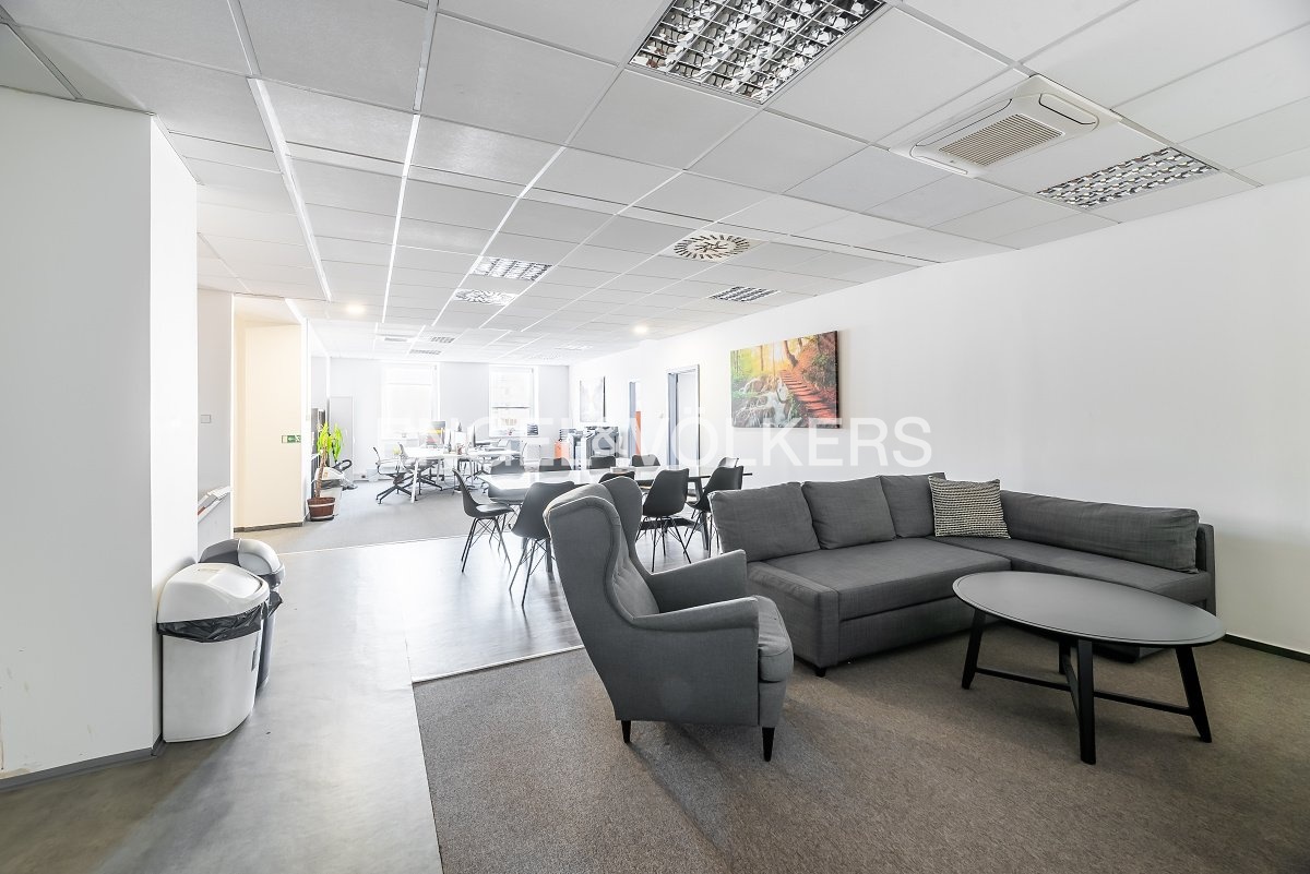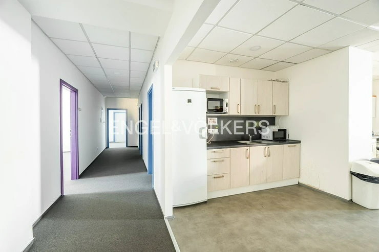 There is the possibility of renting a floor with an area of 788 m2. The space is currently divided by partitions into separate offices and a dining room with a kitchenette, which is fully equipped with a refrigerator, microwave oven, and dishwasher.