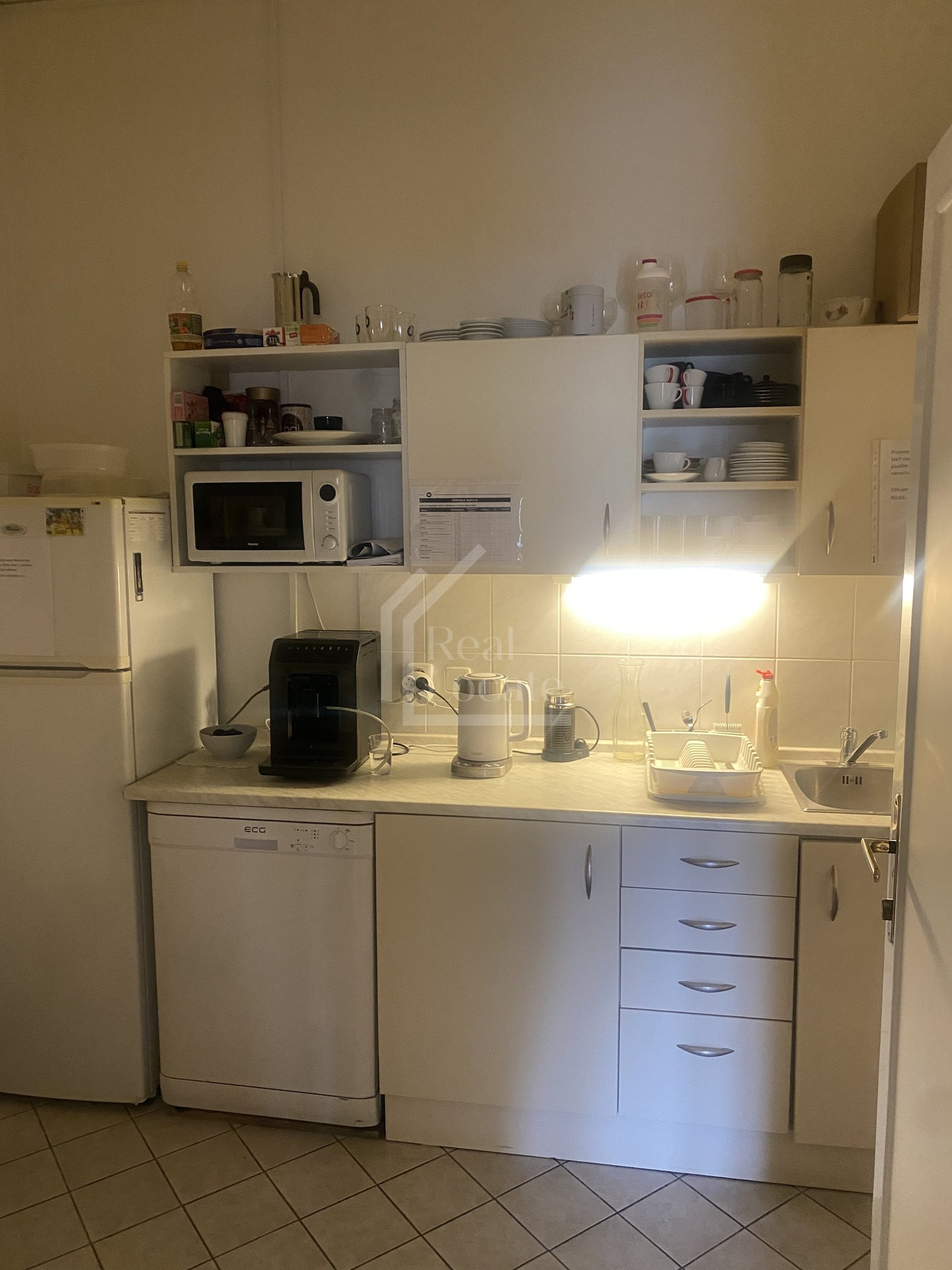 The premises are equipped with a shared kitchenette and restroom facilities, shared by multiple tenants on the floor.