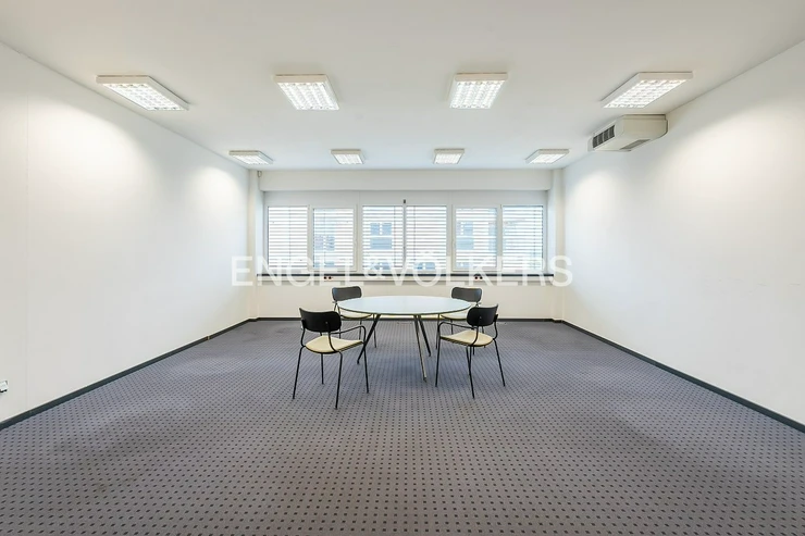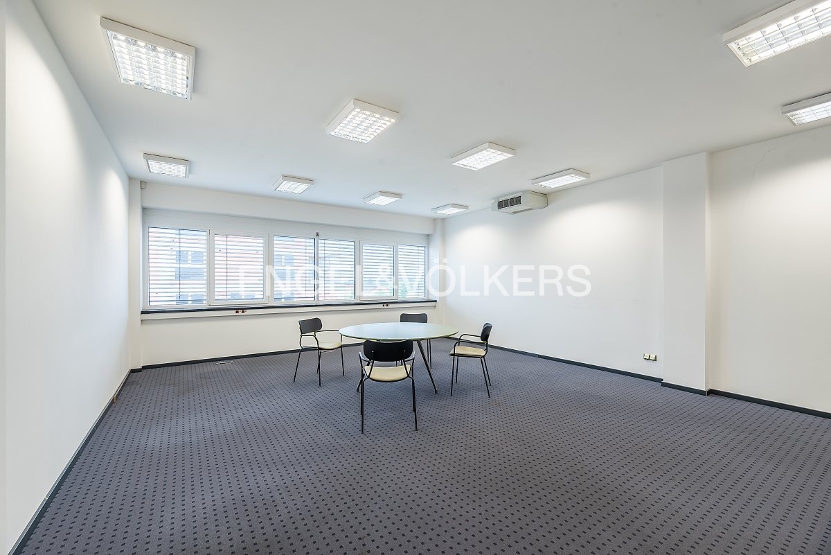 The space is in very good condition, accessed via a central corridor, and consists of separate rooms suitable for individual teams and concentrated work. The standard includes carpets, high-quality office lighting and air conditioning with cooling and heating functions, ensuring comfort throughout the year. Separate toilets, a shower and a kitchenette are a matter of course, providing tenants with all the necessary facilities.