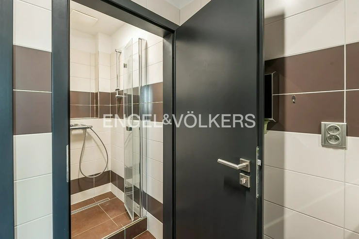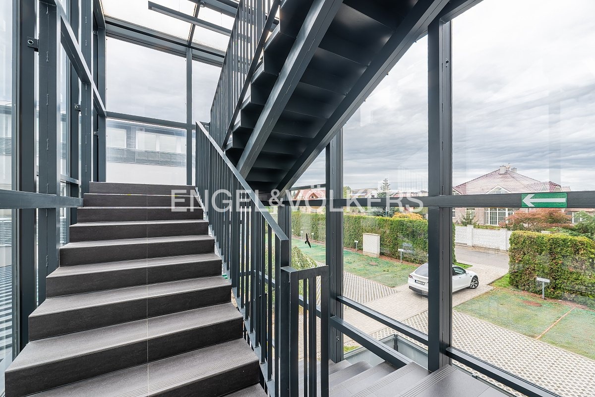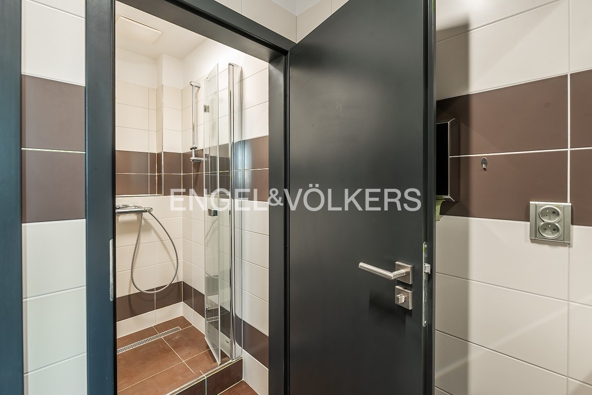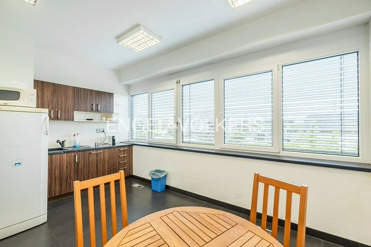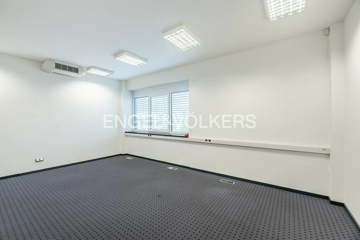 The space is in very good condition and is accessed via a central hallway. The standard includes carpeting, high-quality office lighting, and air conditioning with cooling and heating functions, ensuring comfort throughout the year. Separate toilets, a shower, and a kitchenette are a matter of course, providing tenants with all the necessary facilities.