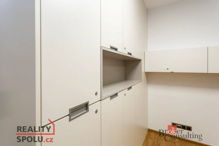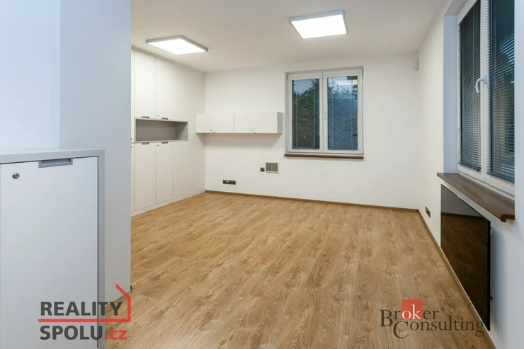 Nabízíme k pronájmu moderní a světlé kancelářské prostory o velikosti 29 m² ve velmi dobrém stavu. Místnost je rozdělena nábytkem na dva prostory, kde druhý lze zavřít posuvnými dveřmi. Nájemce má navíc k dispozici společnou zasedací místnost, kuchyňku a jedno vyhrazené parkovací místo přímo u objektu.