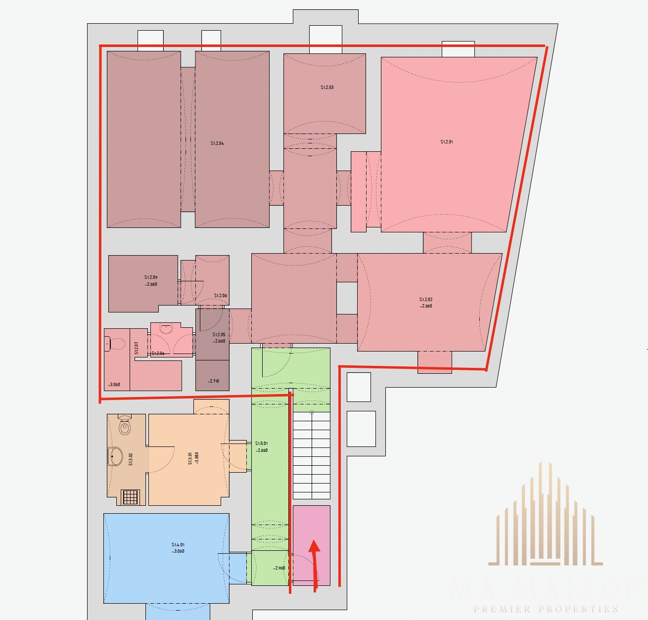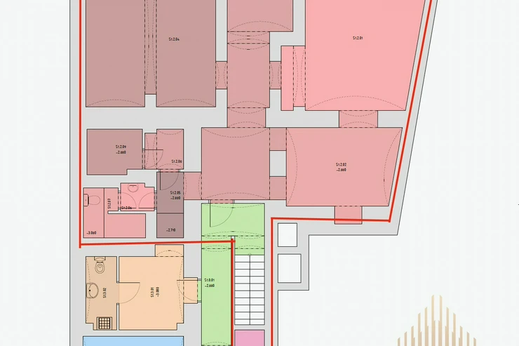 This space is located on the first underground floor and is in shell&core condition. Thanks to that it offers unlimited potential for your business. The space is divided into several rooms with a total floor area of 105 m² - see floor plan. There is a gas connection to the space. The heating system is purely up to your choice - all options are acceptable (gas boiler, electric boiler, direct-fired heaters, heat pump, etc). There is also preparation for air conditioning and fresh air supply is provided.