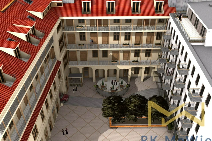 The building features a representative reception providing smooth operation and a pleasant welcome for visitors. The layout includes an entrance hall, two separate rooms (the smaller one equipped with a kitchenette), and a bathroom (with shower, sink, and toilet). Parking spaces are available for rent in the underground garage for 4,500 CZK + VAT/month = 5,445 CZK/month incl. VAT per space, or in the courtyard for an additional fee.