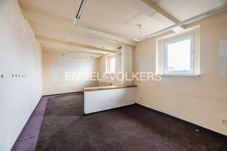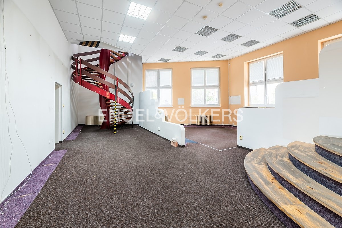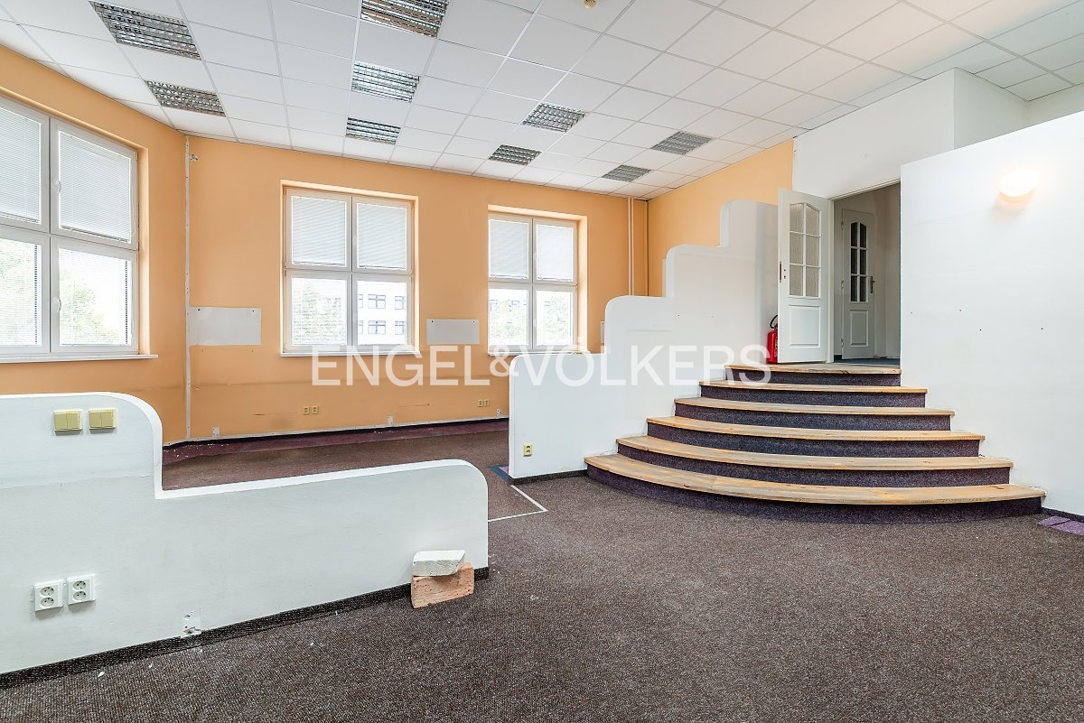 We offer for rent attractive premises with a total area of approximately 138 sqm, divided into two floors within a well-maintained commercial building. On the ground floor (79 sqm), there is a spacious room with its own sanitary facilities and plenty of natural light. A spiral staircase leads to the upper floor (59 sqm), which offers a smaller, cozier space. The interior combines modern lighting, practical flooring, and abundant daylight. Comfort is ensured by radiator heating and air conditioning in part of the premises. Thanks to their versatility, the spaces are ideal not only for office use but also for creative activities, services, or a representative studio emphasizing privacy and atmosphere.