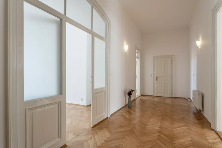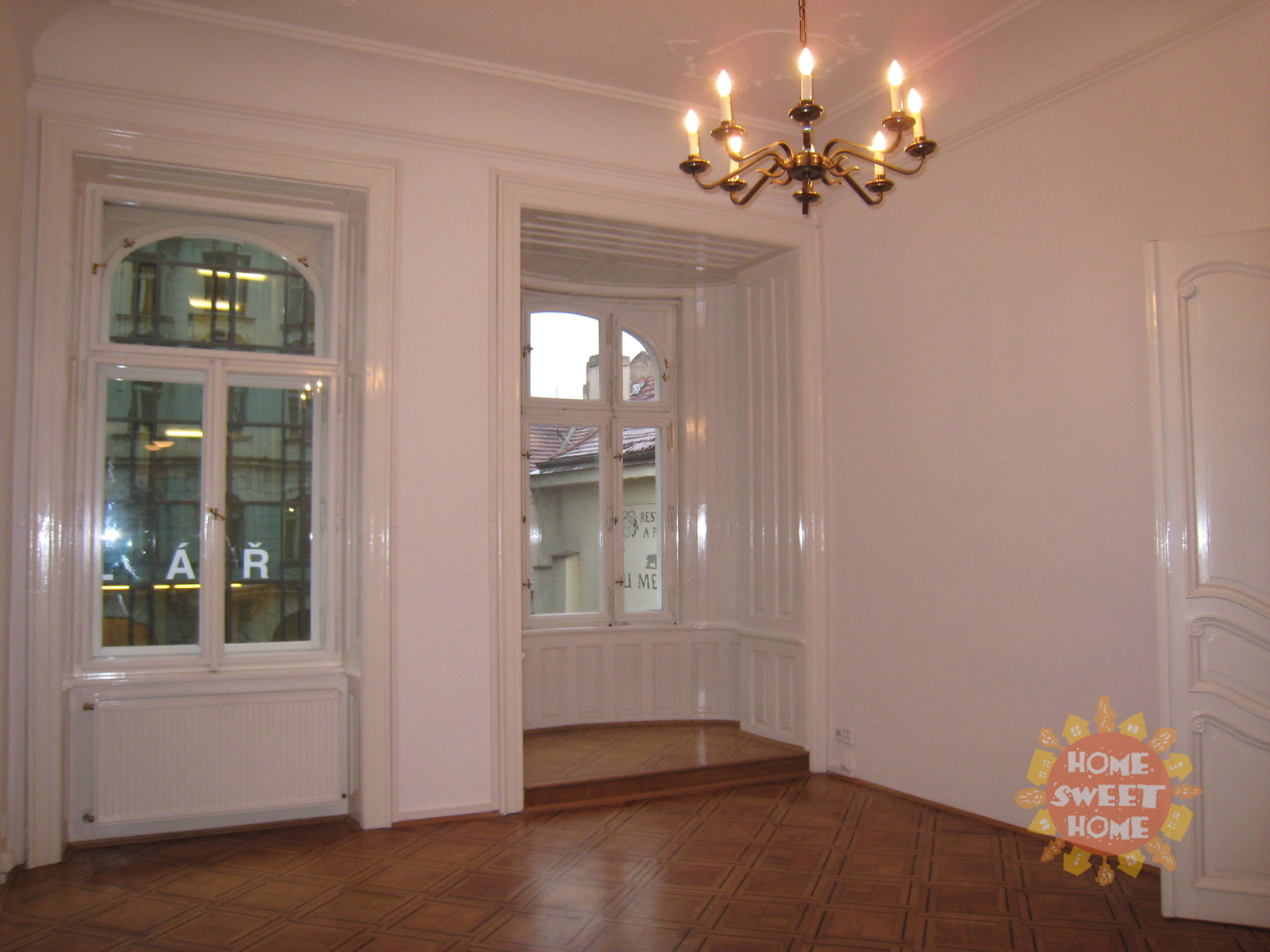 We offer for rent an unfurnished 4+1 apartment suitable for use as an office. The apartment with an area of 174 sqm is located on the second above floor of a nice historical house with an elevator in the lucrative area of the Old Town.