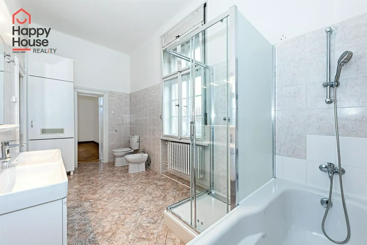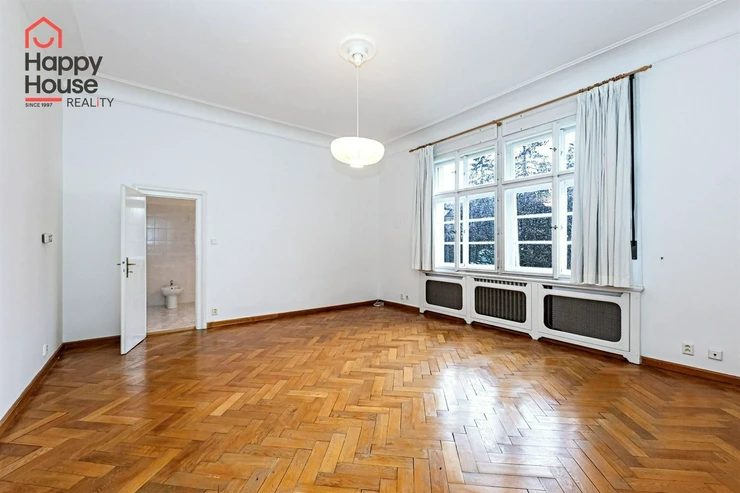 We offer for rent an exceptional unfurnished office space with a total area of 246 m² and a terrace of 26 m², located on the 1st floor of an authentic First Republic brick villa without an elevator, in the prestigious residential area of Prague 6 – Střešovice.