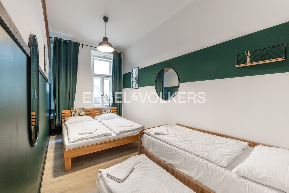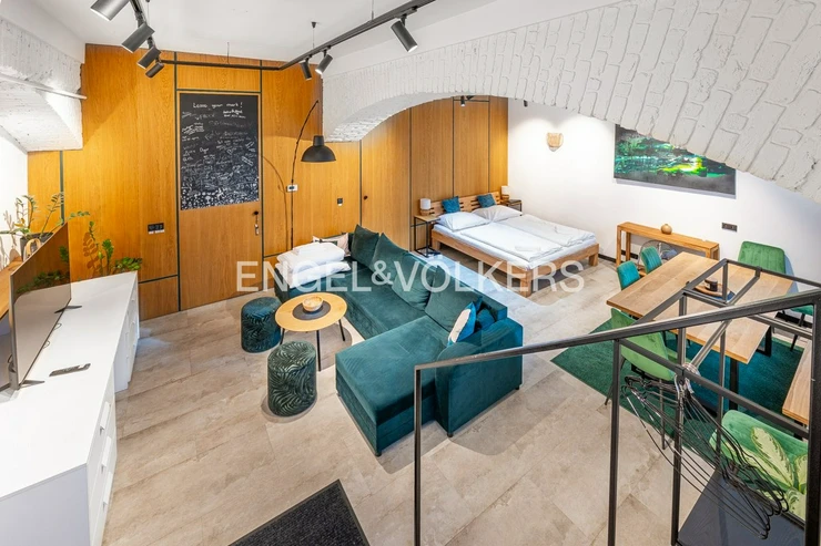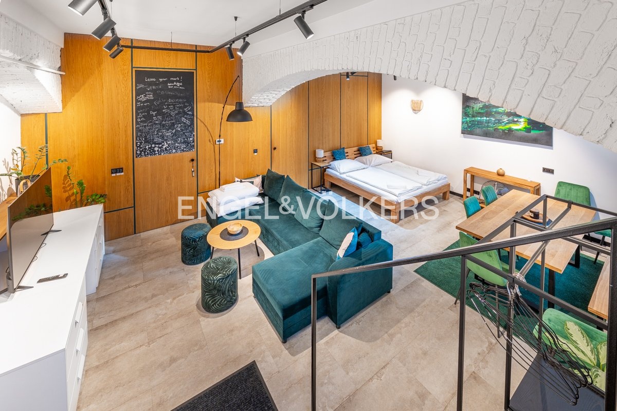 We offer for rent a completely reconstructed space, situated on the ground floor of an elegant apartment building at the prestigious address of Rašínovo nábřeží with a view of the Vltava River, just a few steps from the popular Prague embankment (Náplavka). The space is currently used as a short-term accommodation facility, but in the past it served as a commercial unit with the original building approval for a "shop". This allows for its versatile use – ideally as a representative office, studio, showroom, or design shop. It is a slightly lowered 1st above-ground floor (NP) with a separate entrance directly from the street with two large windows usable as shop windows, which ensure plenty of daylight and excellent visibility from the embankment.