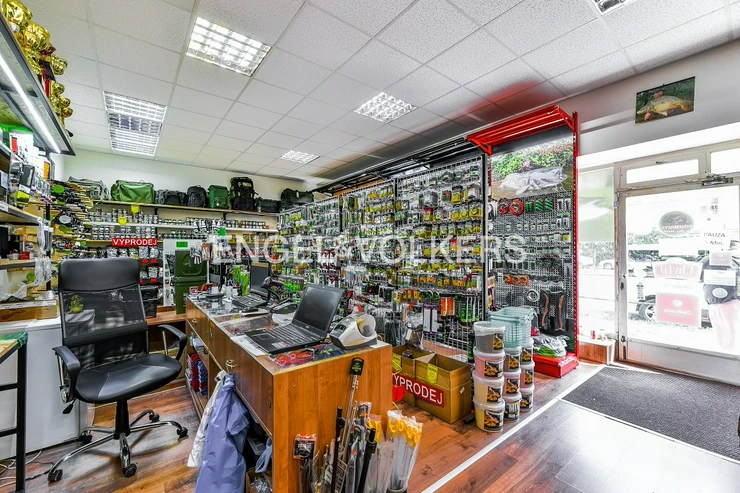 We offer for rent an established fishing tackle shop. It is located near the Pražského povstání metro station and tram stops Vozovna Pankrác and Vyšehrad. The premises have their own entrance directly from the street and large display windows.